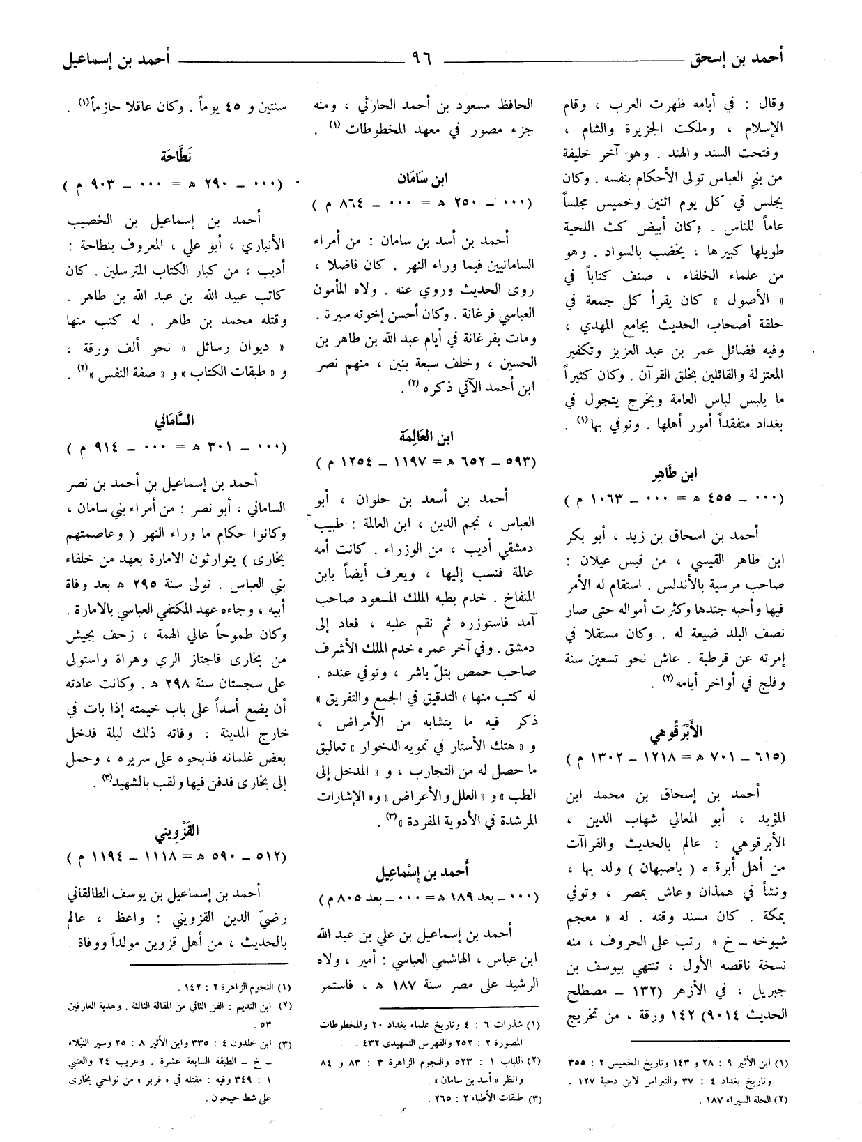 (2) ابن النديم: الفن الثاني من المقالة الثالثة. وهدية العارفين 53.