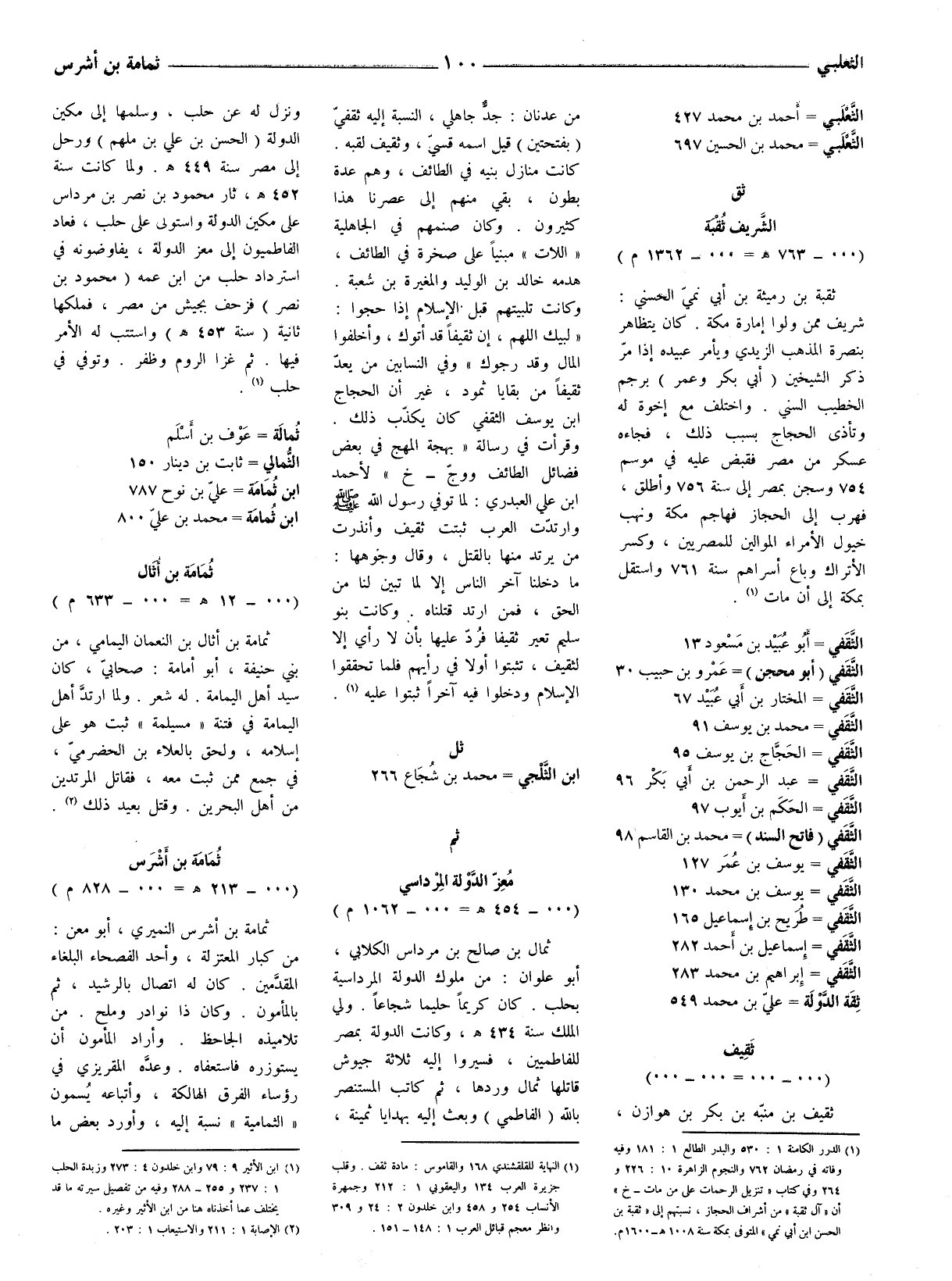 (1) الدرر الكامنة 1: 530 والبدر الطالع 1: 181 وفيه وفاته في رمضان 762 والنجوم الزاهرة 10: 226 و 264 وفي كتاب (تنزيل الرحمات على من مات - خ) أن (آل ثقبة) من أشراف الحجاز، نسبتهم إلى (ثقبة بن الحسن ابن أبي نمي) المتوفى بمكةسنة 1008 هـ - 1600 م.