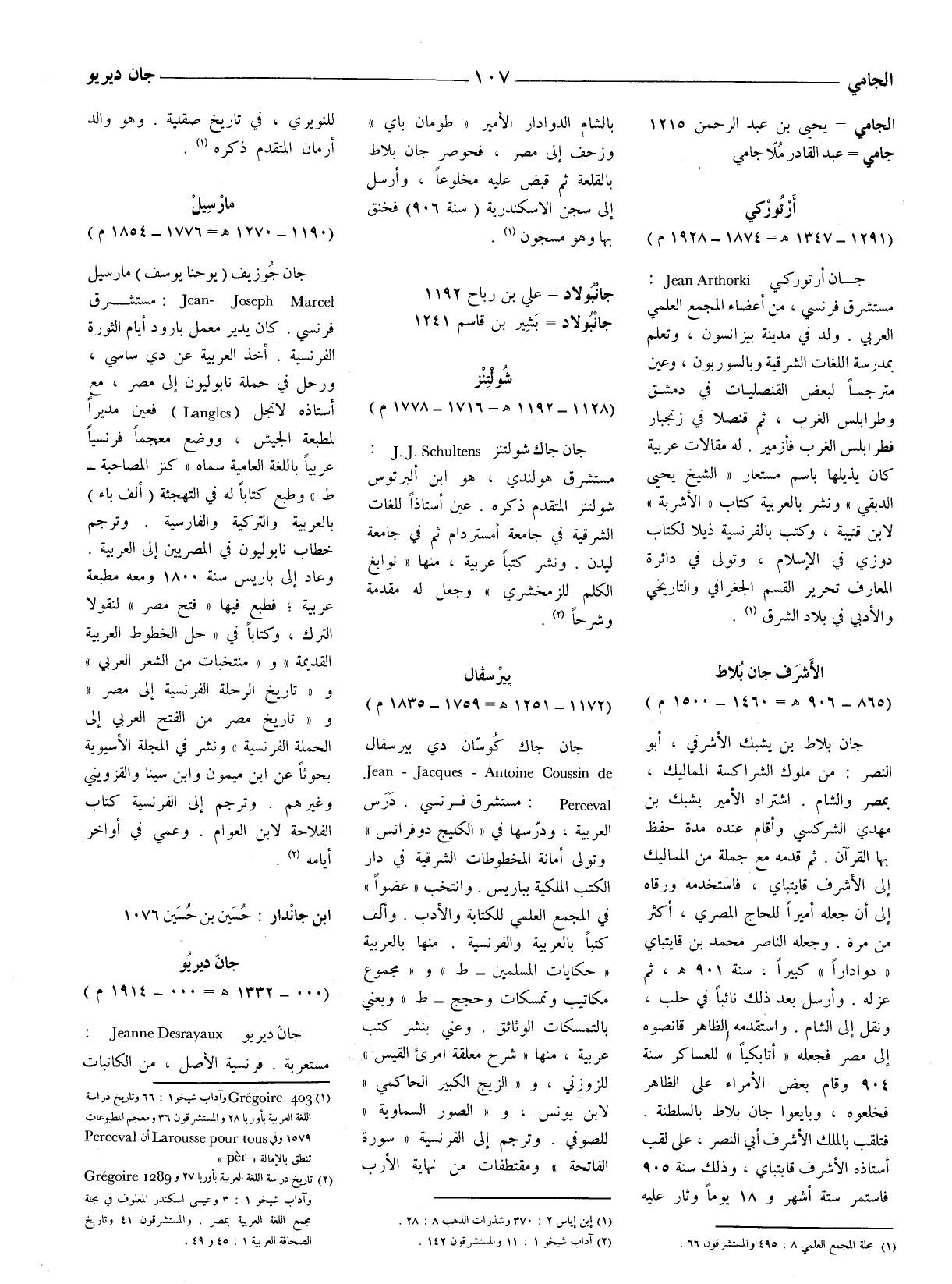 (1) 403 Gregoire وآداب شيخو 1: 66 وتاريخ دراسة اللغة العربية بأوربا 28 والمستشرقون 36 ومعجم المطبوعات 1579 وفي Larousse pour tous أن Perceval تنطق بالإمالةper))