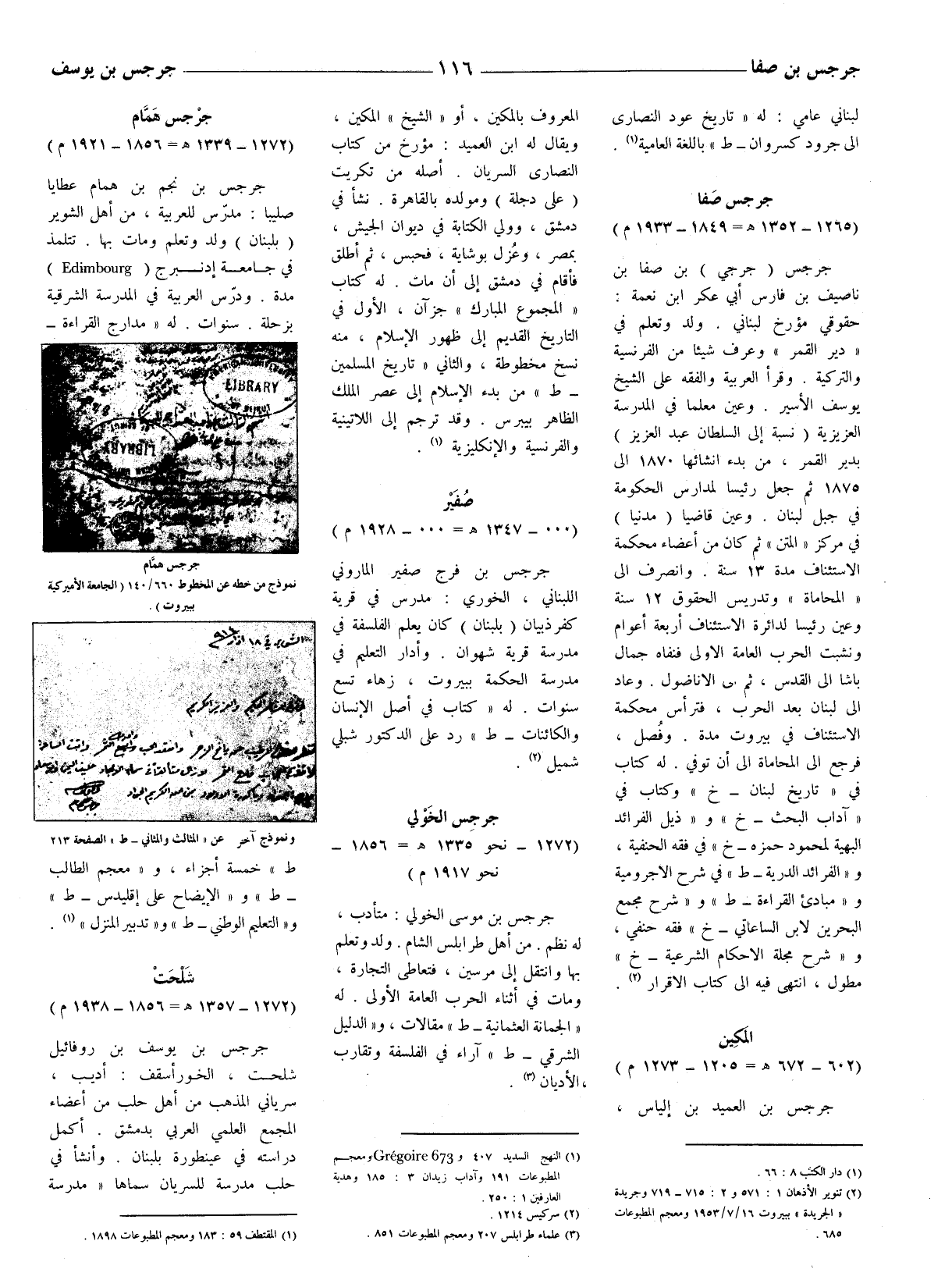 جرجس بن فرج صفير الماروني اللبناني، الخوري: مدرس في قرية كفرذبيان (بلبنان) كان يعلم الفلسفة في مدرسة قرية شهوان. وأدار التعليم في مدرسة الحكمة ببيروت، زهاء تسع سنوات.