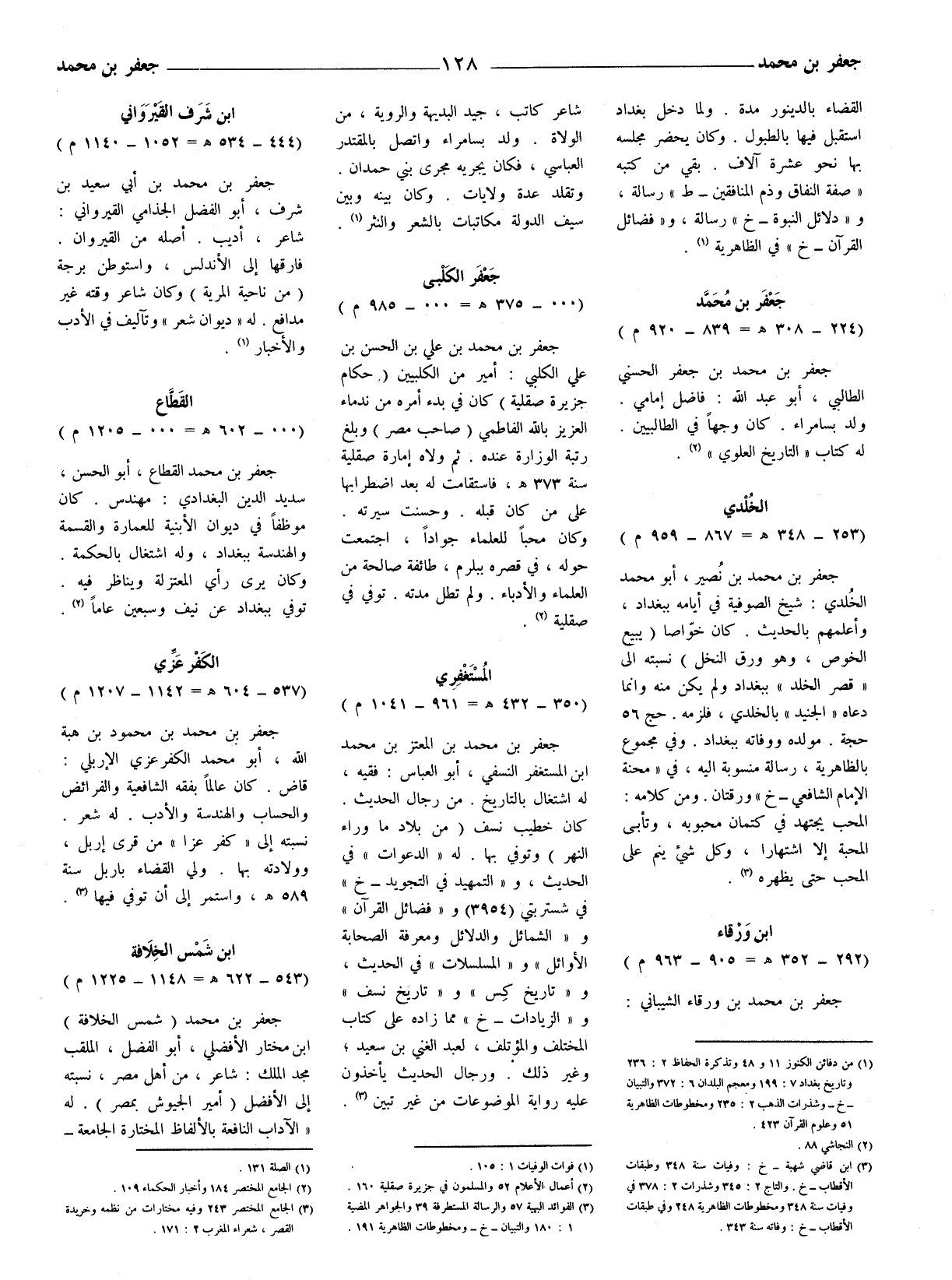 (3) ابن قاضي شهبة - خ: وفيات سنة 348 وطبقات الأقطاب - خ. والتاج 2: 345 وشذرات 2: 378 في وفيات سنة 348 ومخطوطات الظاهرية 248 وفي طبقات الأقطاب - خ: وفاته سنة 343.