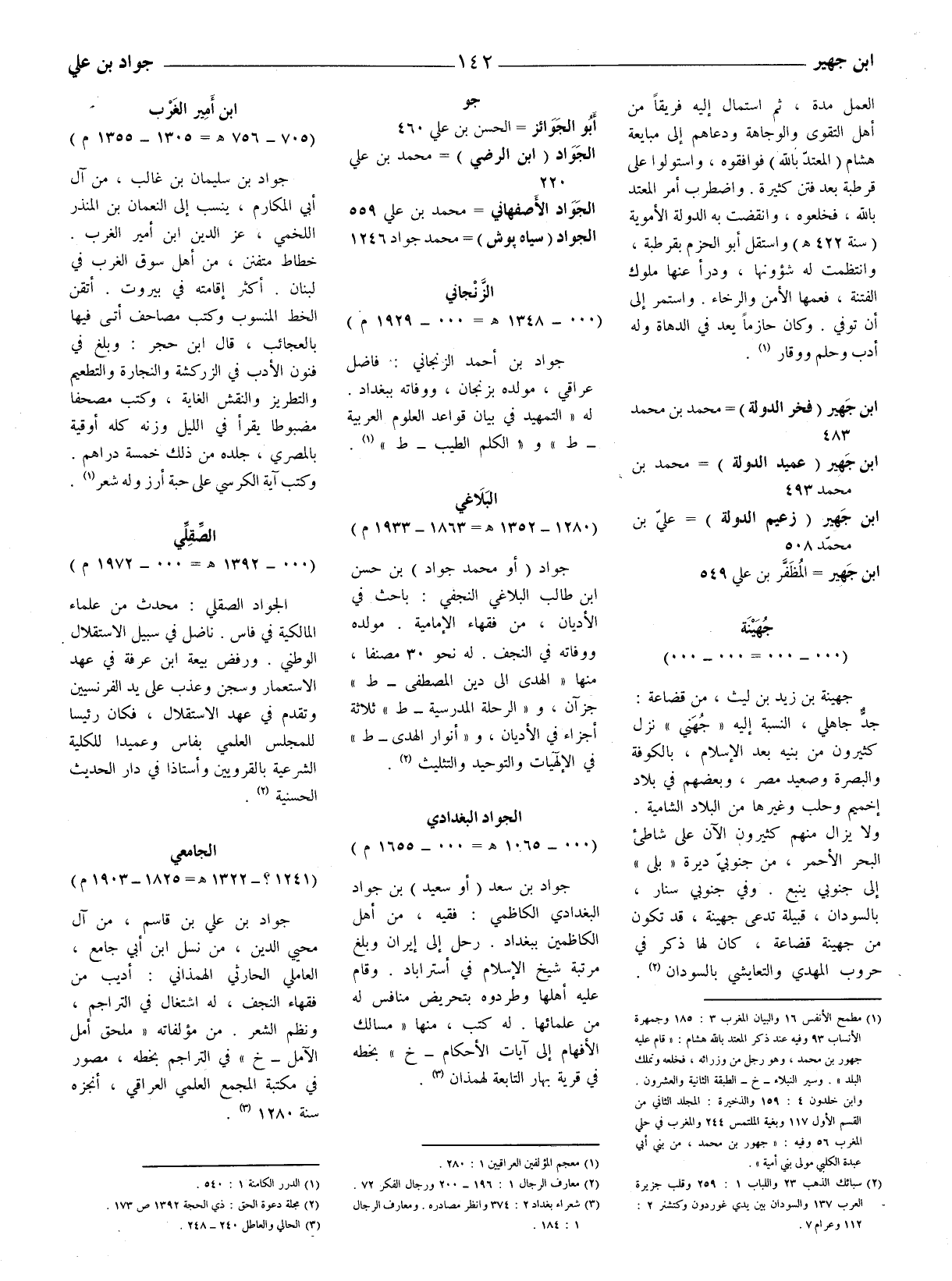 وسير النبلاء - خ - الطبقة الثانية والعشرون. وابن خلدون 4: 159 والذخيرة: المجلد الثاني من القسم الأول 117 وبغية الملتمس 244 والمغرب في حلى المغرب 56 وفيه: (جهور بن محمد، من بني أبي عبدة الكلبي مولى بني أمية) .