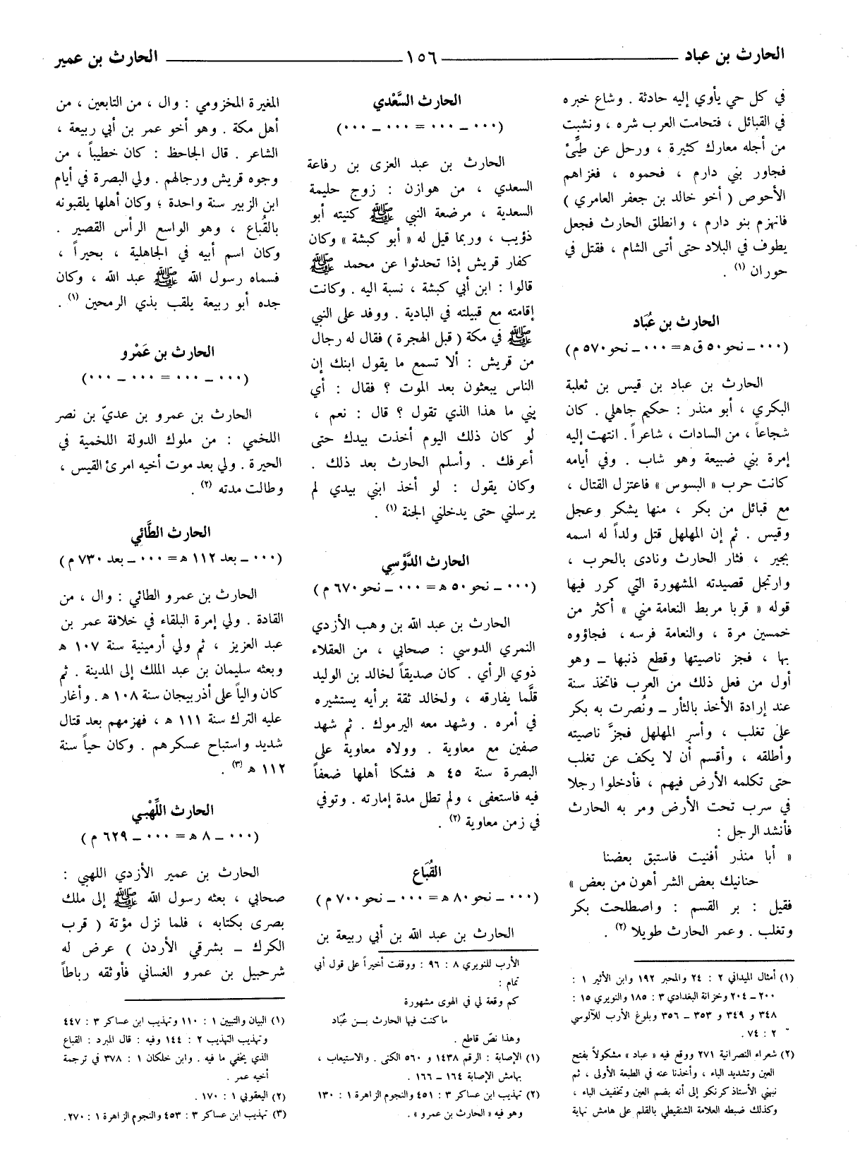 (2) شعراء النصرانية 271 ووقع فيه (عباد) مشكولا بفتح العين وتشديد الباء، وأخذنا عنه في الطبعة الأولى، ثم نبهني الأستاذ كرنكو إلى أنه بضم العين وتخفيف الباء، وكذلك ضبطه العلامة الشنقيطي بالقلم على هامش نهاية