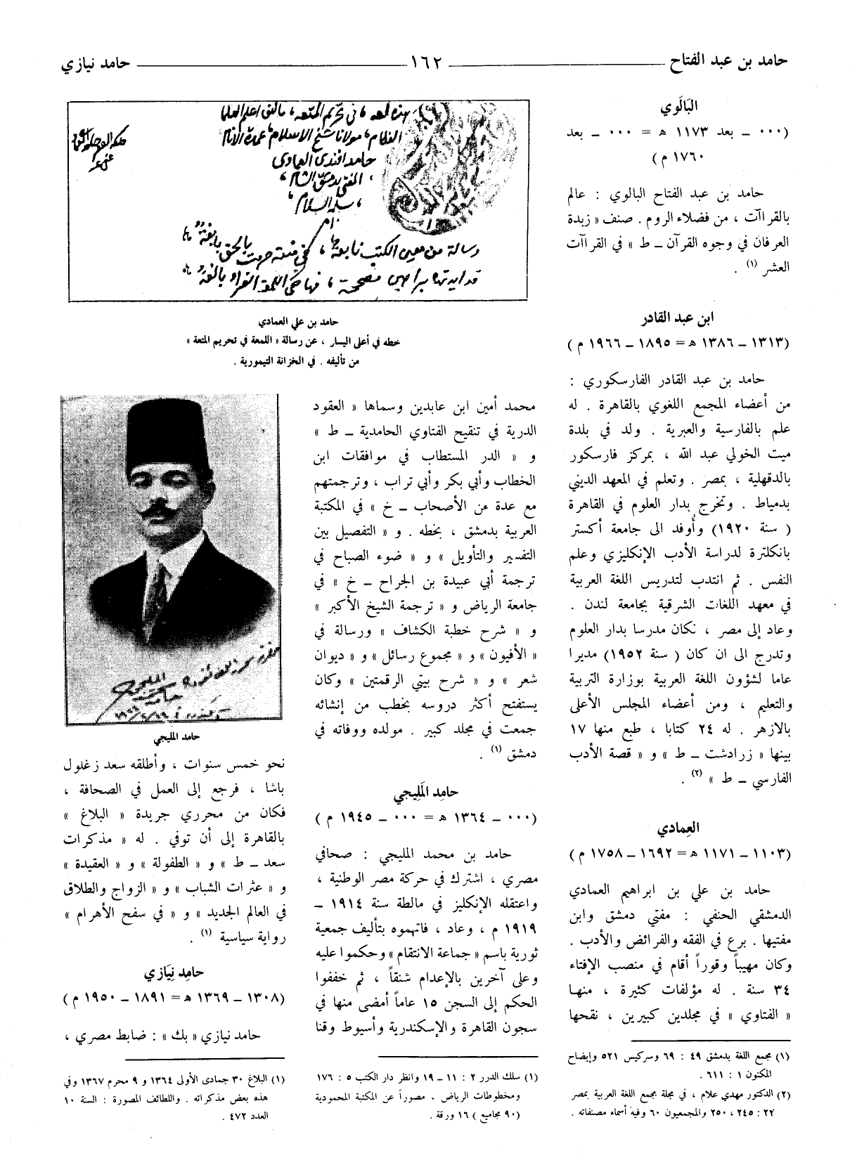 (2) الدكتور مهدي علام، في مجلة مجمع اللغة العربية بمصر 22: 245، 250 والمجمعيون 60 وفيه أسماء مصنفاته.