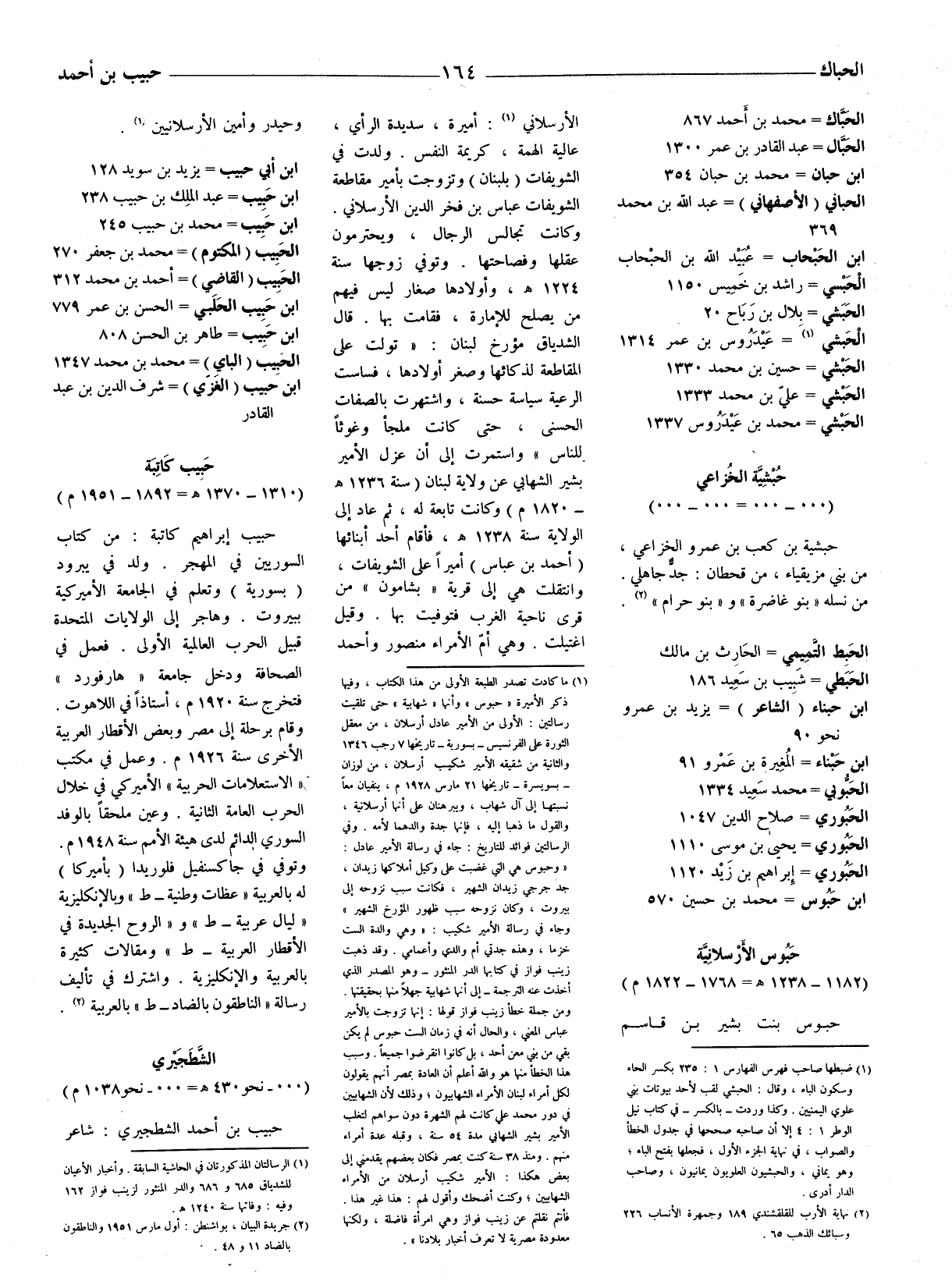 (3) ما كادت تصدر الطبعة الأولى من هذا الكتاب، وفيها ذكر الأميرة (حبوس) وأنها (شهابية) حتى تلقيت رسالتين: الأولى من الأمير عادل أرسلان، من معقل الثورة على الفرنسيس - بسورية - تاريخها 7 رجب 1346 والثانية من شقيقه الأمير شكيب أرسلان، من لوزان - بسويسرة - تاريخها 21 مارس 1928 م، ينفيان معا نسبتها إلى آل شهاب، وببرهنان على أنها أرسلانية، والقول ما ذهبا إليه، فإنّها جدة والدهما لأمه، وفي الرسالتين فوائد للتاريخ: جاء في رسالة الأمير عادل: (وحبوس هي التي غضبت على وكيل أملاكها زيدان، جد جرجي زيدان الشهير، فكانت سبب نزوحه إلى بيروت، وكان نزوحه سبب ظهور المؤرخ الشهير) وجاء في رسالة الأمير شكيب: (وهي والدة الست خزما، وهذه جدتي أم والدي وأعمامي.