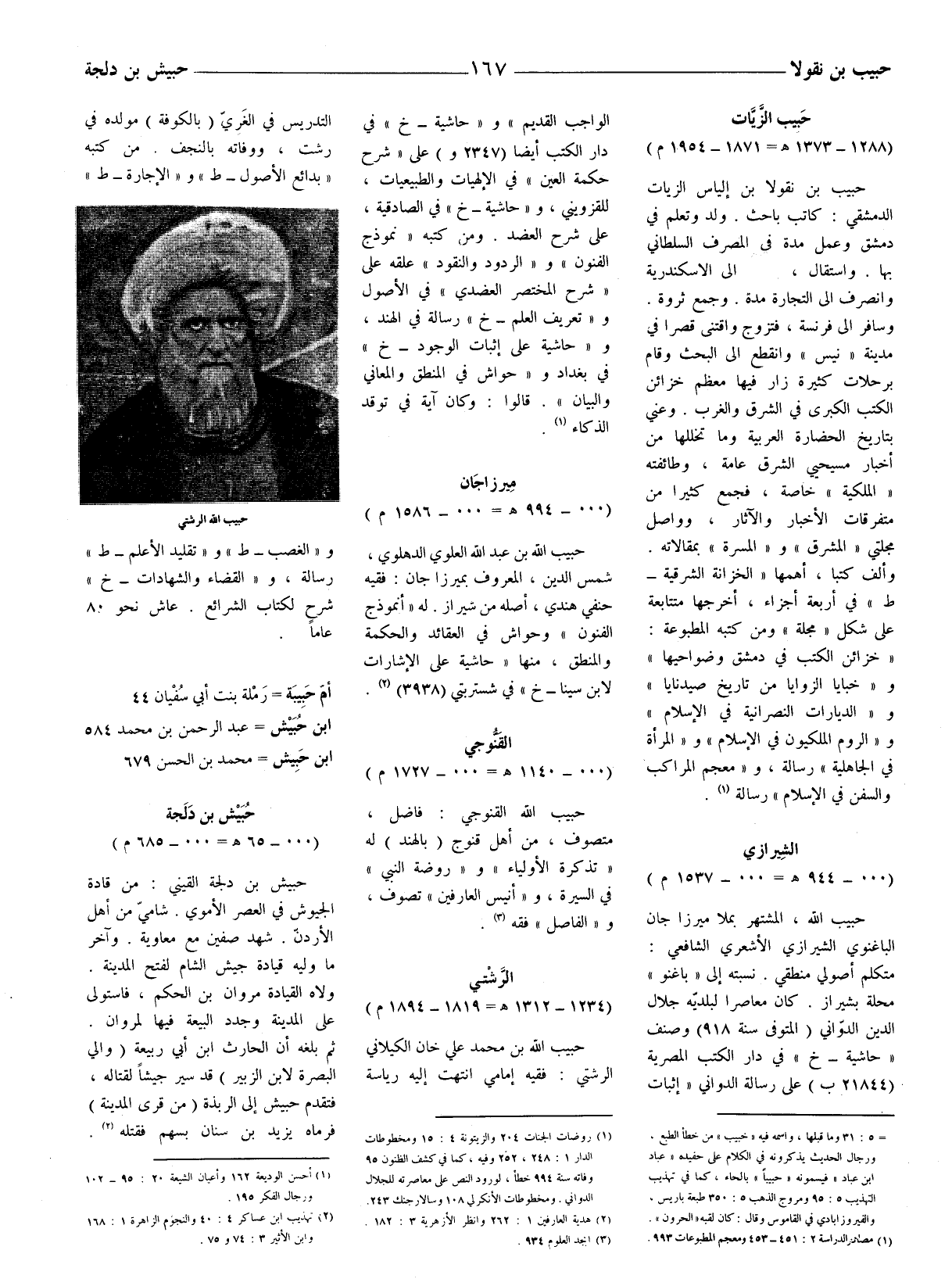 حبيب بن نقولا بن إلياس الزيات الدمشقيّ: كاتب باحث. ولد وتعلم في دمشق وعمل مدة في المصرف السلطاني بها. واستقال، وسافر إلى الاسكندرية وانصرف إلى التجارة مدة.