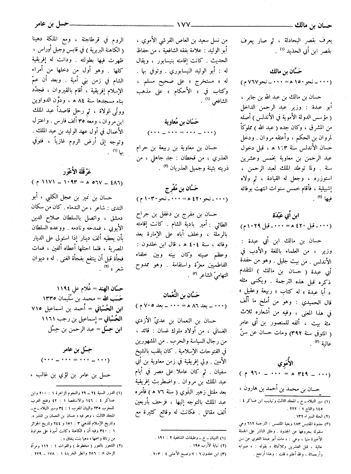 (1) الدرر السنية 24 - 29 والنجوم الزاهرة 1: 200 وابن عساكر 4: 146 والاستقصا 1: 42 وفتح العرب للمغرب 235 والبيان المغرب 1: 34 وسير النبلاء - خ - المجلد الثالث، وهو فيه (حسان بن النعمان بن المنذر) . وتاريخ الإسلام للذهبي 3: 151 و 244 وتاريخ الجزائر1: 340 وفيه أن (الكاهنة) كانت أميرة على مغراوة من زناتة واسمها (دهيا بنت ينفاق) .