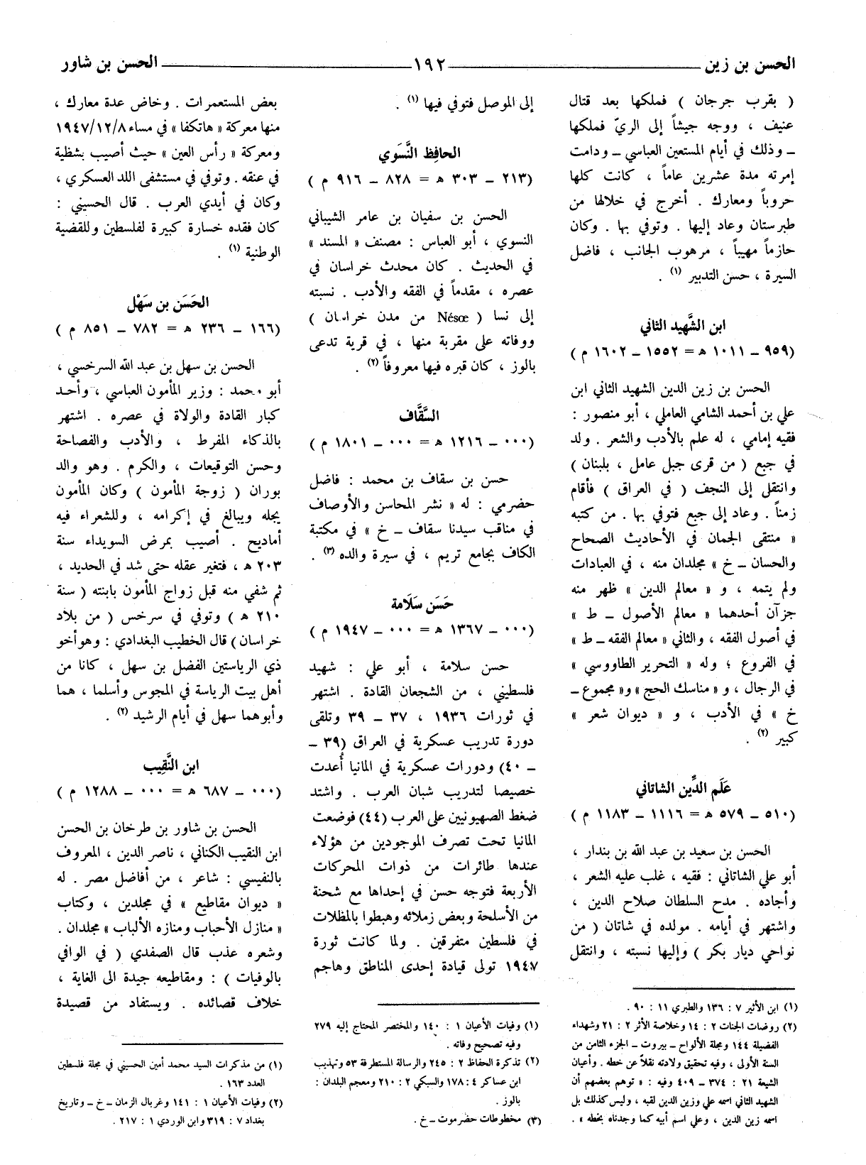 الحسن بن زين الدين الشهيد الثاني ابن علي بن أحمد الشامي العاملي، أبو منصور: فقيه إمامي، له علم بالأدب والشعر. ولد في جبع (من قرى جبل عامل، بلبنان) وانقل إلى النجف (في العراق) فأقام زمنا. وعاد إلى جبع فتوفي بها. من كتبه (منتقى الجمان في الأحاديث الصحاح والحسان - خ) مجلدان منه، في العبادات ولم يتمه، و (معالم الدين) ظهر منه جزآن أحدهما (معالم الأصول - ط) في أصول الفقه، والثاني (معالم الفقه - ط) في الفروع، وله (التحرير الطاووسيّ) في الرجال، و (مناسك الحج) و (مجموع - خ) في الأدب، و (ديوان شعر)