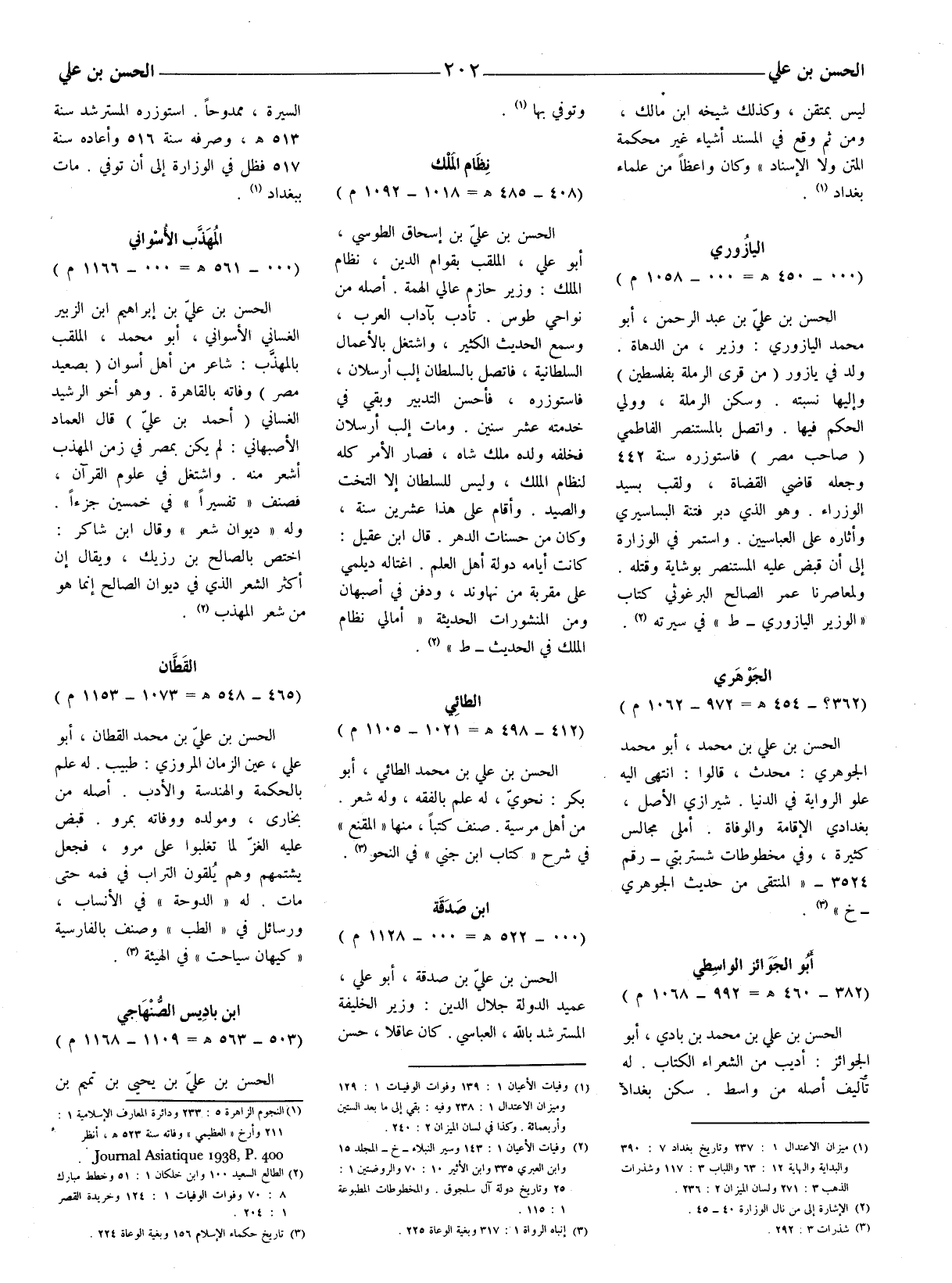 (1) النجوم الزاهرة 5: 233 ودائرة المعارف الإسلامية 1: 211 وأرخ (العظيمي) وفاته سنة 523 هـ أنظر Journal Asiatigue I 938 P.400.