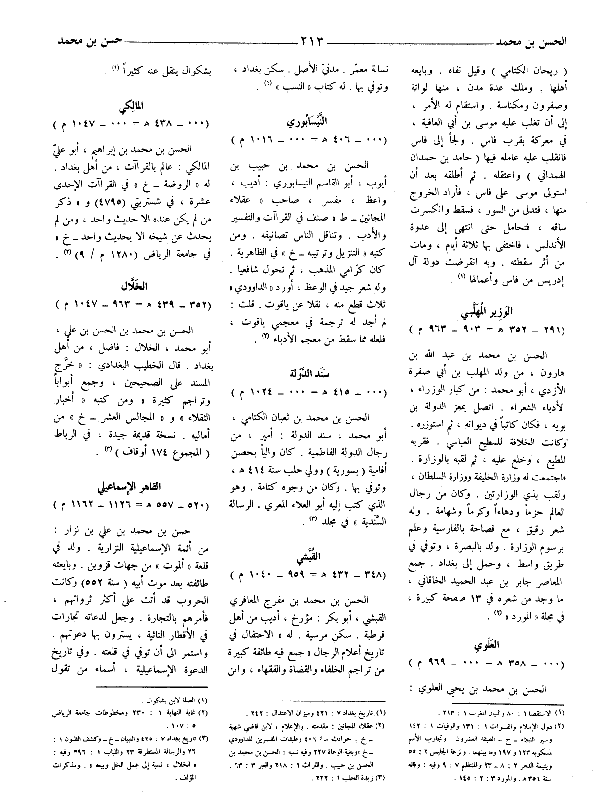 (2) عقلاء المجانين: مقدمته. والإعلام، لابن قاضي شهبة - خ: حوادث سنة 406 وطبقات المفسرين للداوودي - خ) وبغية الوعاة 227 وفيه نسبه: الحسن بن محمد بن الحسن بن حبيب.