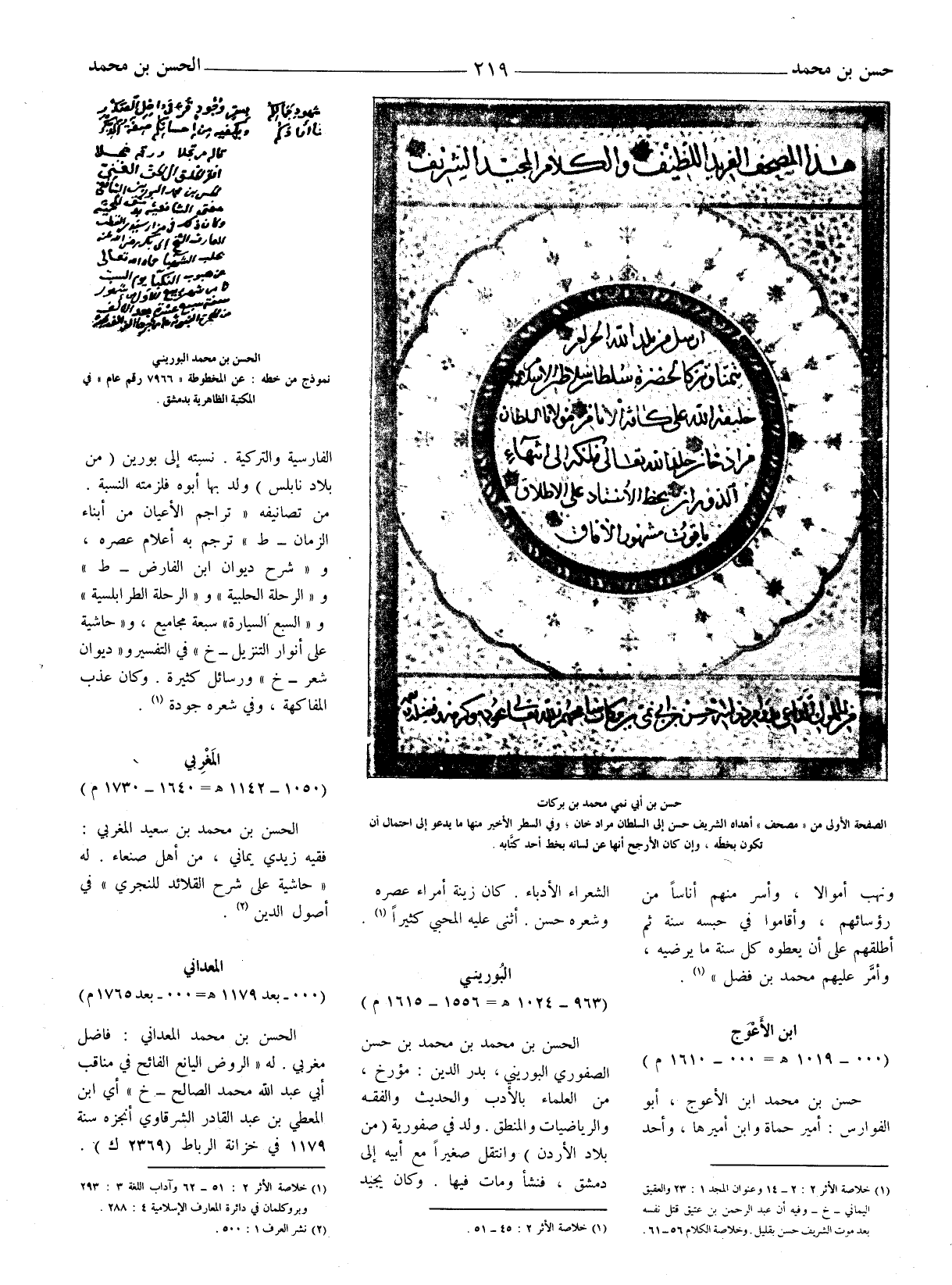 الحسن بن محمد بن محمد بن حسن الصفوري البوريني، بدر الدين: مؤرخ، من العلماء بالأدب والحديث والفقه والرياضيات والمنطق. ولد في صفورية (من بلاد الأردن) وانتقل صغيرا مع أبيه إلى دمشق. فنشأ ومات فيها. وكان يجيد