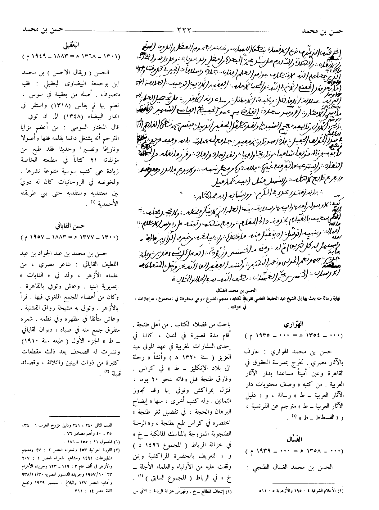 حسن بن محمد الهواري: عارف بالآثار مصري. تخرج بمدرسة الحقوق في القاهرة وعين أمينا مساعدا بدار الآثار العربية. من كتبه (وصف محتويات دار الآثار العربية - ط) رسالة، و (دليل الآثار العربية - ط) مترجم عن الفرنسية، و (الفسطاط - ط) (1) .