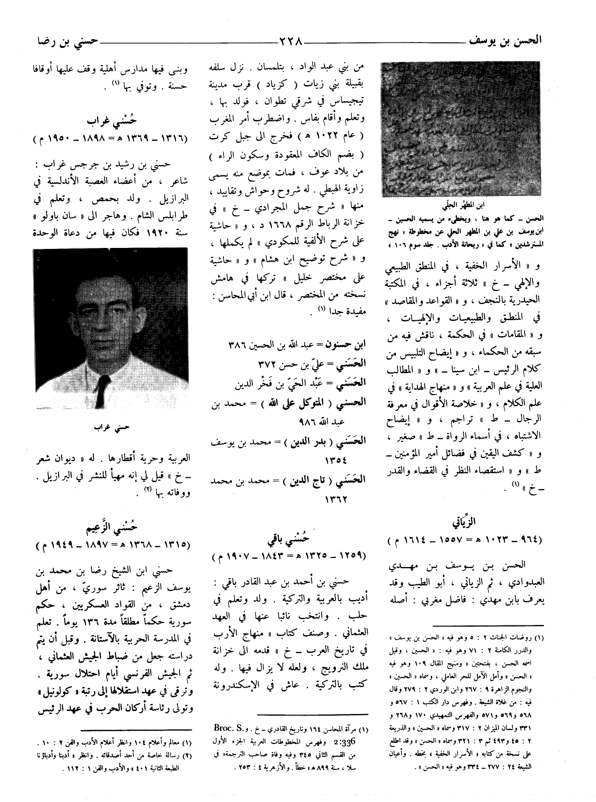 (1) روضات الجنات 2: 5 وهو فيه (الحسن بن يوسف) والدرر الكامنة 2: 71 وهو فيه: (الحسين، وقيل اسمه الحسن، بفتحتين) ومنهج المقال 109 وهو فيه (الحسن) وأمل الآمل للحر العاملي، وسماه (الحسين) والنجوم الزاهرة 9: 267 وابن الوردي 2: 279 وقال فيه: من غلاة الشيعة. وفهرس دار الكتب 1: 567 و568 و 569 و 571 والفهرس التمهيدي 170 و 268 و 331 ولسان الميزان 2: 317 وسماه (الحسين) والذريعة 2: 45 و 493 ثم 3: 321 وسماه (الحسن) وقد اطلع على نسخة من كتابه (الأسرار الخفية) بخطه. وأعيان الشيعة 24: 277 - 334 وهو فيه (الحسن) .