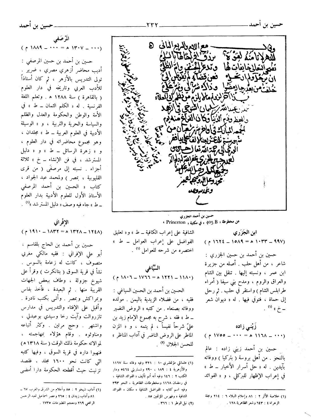 حسين بن أحمد زيني زاده: عالم بالنحو. من أهل بروسة (بتركيا) ووفاته بآيدين. له (حل أسرار الأخيار - ط) في إعراب الاضهار للبركلي، و (الفوائد
