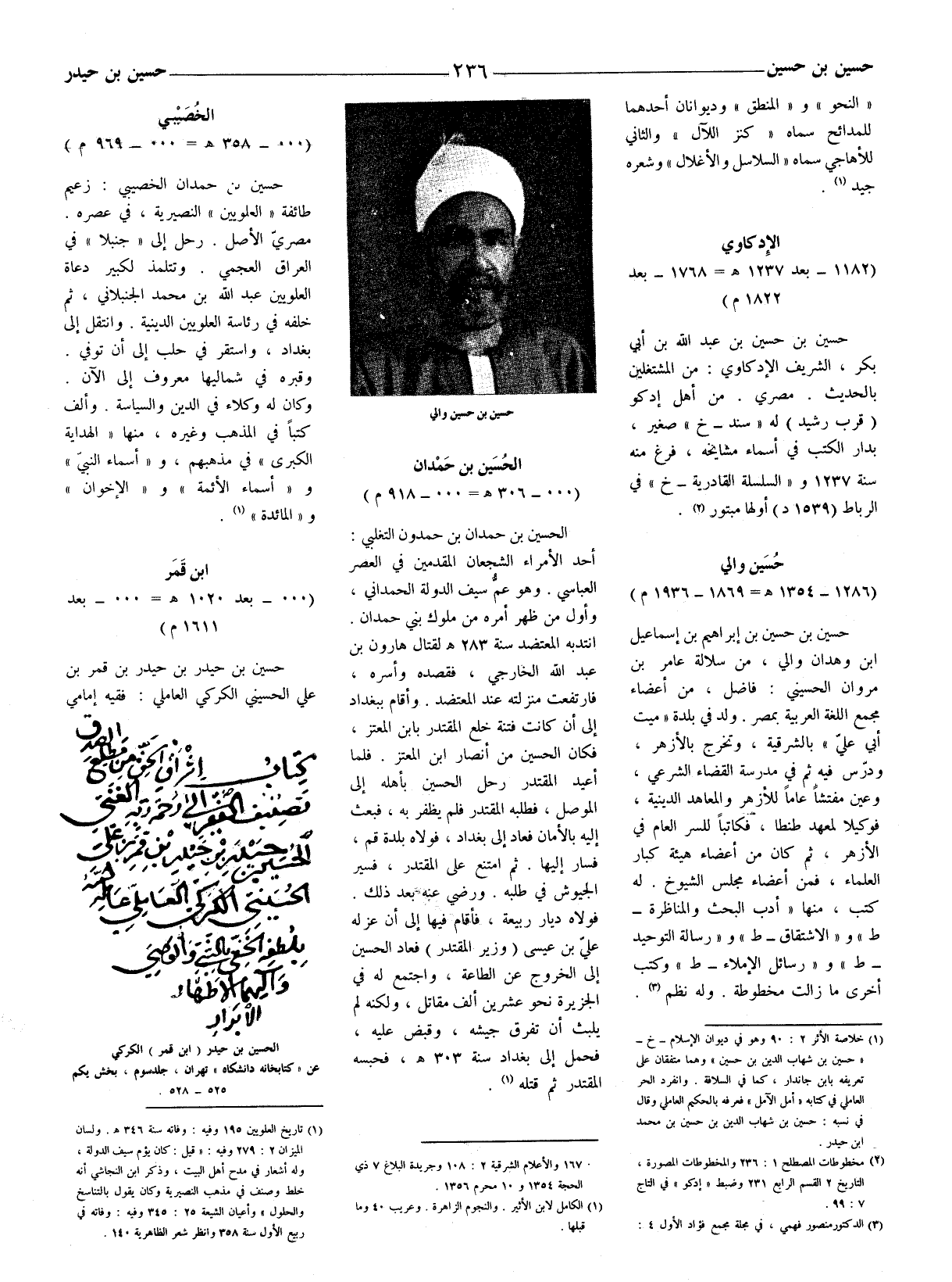 حسين بن حمدان الخصيبي: زعيم طائفة (العلويين) النصيرية، في عصره. مصري الأصل.