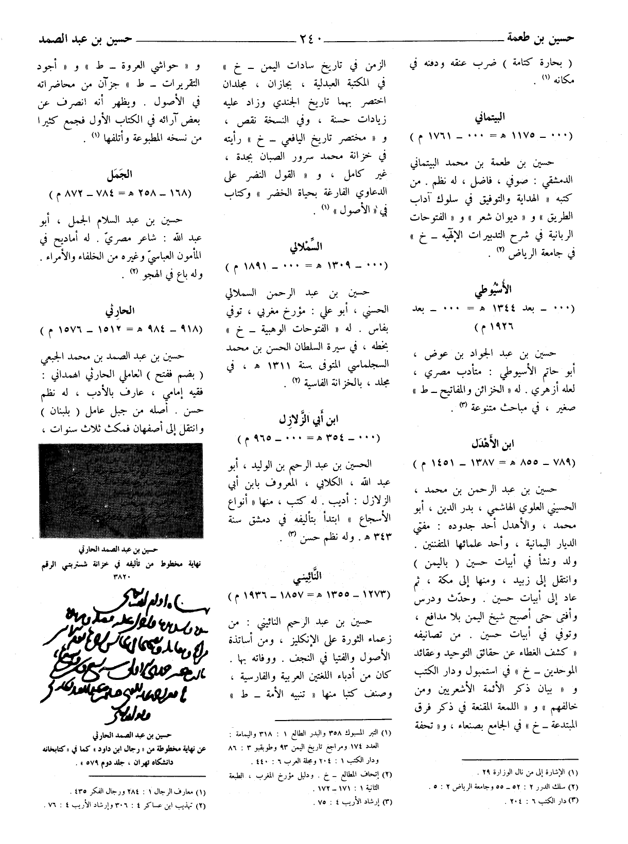 (1) التبر المسبوك 358 والبدر الطالع 1: 318 واليمامة: العدد 174 ومراجع تاريخ المين 93 وطوبقبو 3: 86 ودار الكتب 1: 204 ومجلة العرب 6: 440.