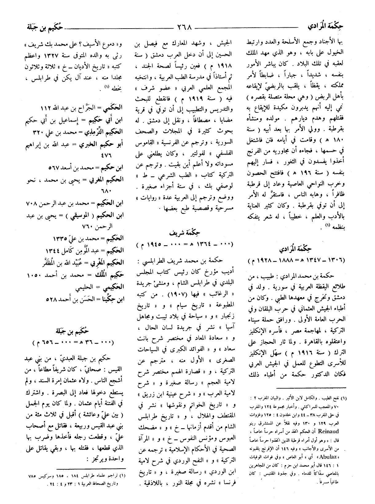 حكمة بن محمّد المرادي: طبيب، من طلائع اليقظة العربية في سورية. ولد في دمشق وتخرّج في معهدها الطبي. وكان من أطباء الجيش العثماني في حرب البلقان وفي الحرب العامة الأولى.