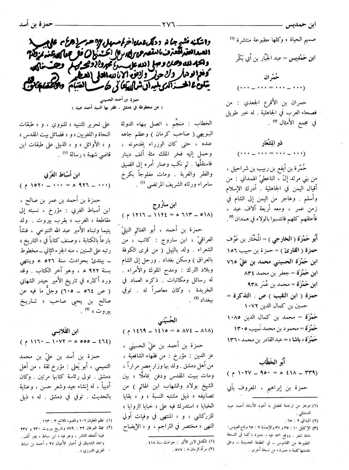 (3) الإكليل 10: 35 و 37 والإصابة 2: 65 وتاج العروس: مادة شعر. ووقع اسمه فيه (حمزة) كما في النسخة المطبوعة من القاموس - في المطبعة الحسينية - وعلى هامشها كلمة (حمرة) من نسخة أخرى.
