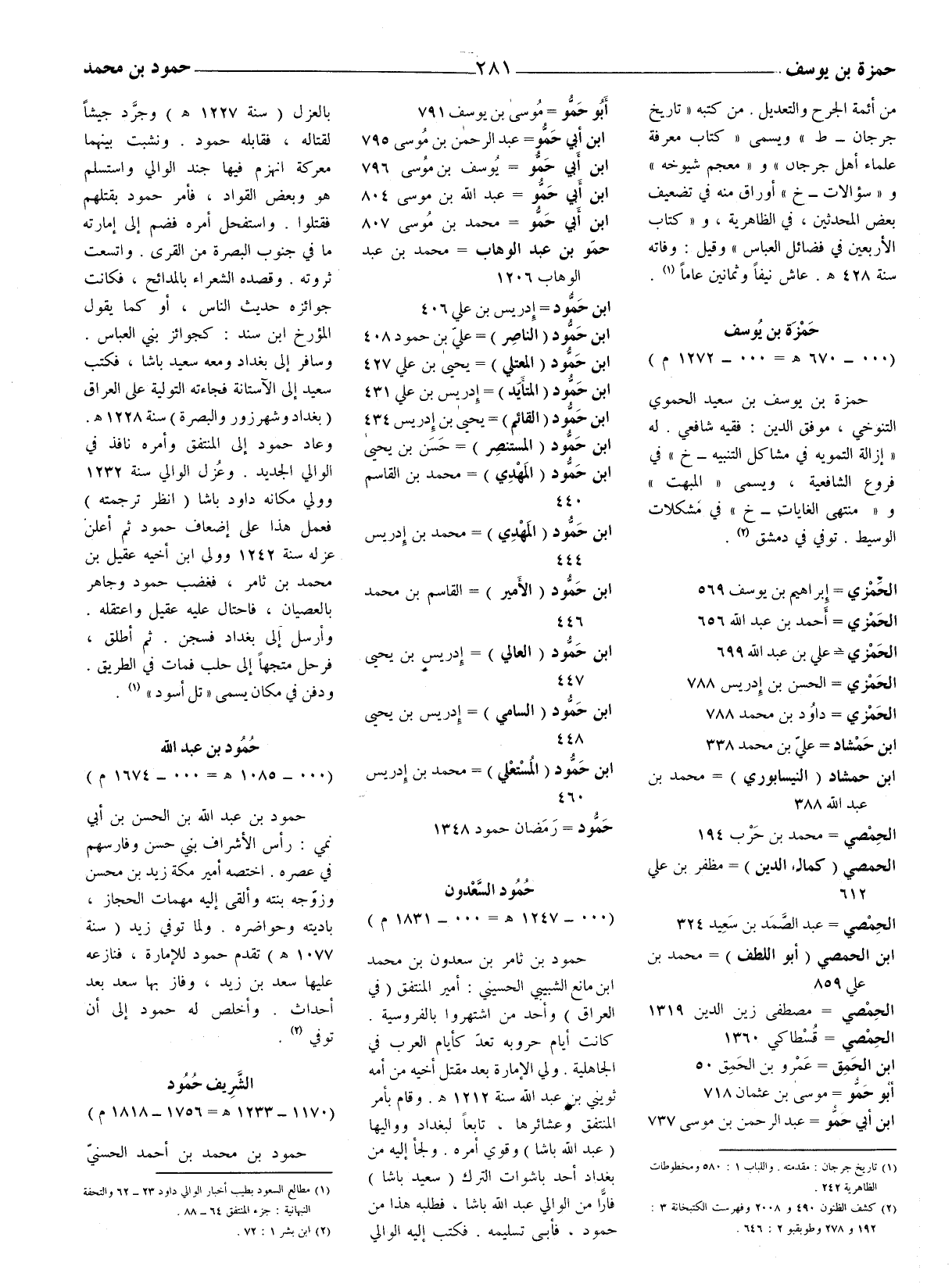 (1) تاريخ جرجان: مقدمته. واللباب 1: 580 ومخطوطات الظاهرية 242.
