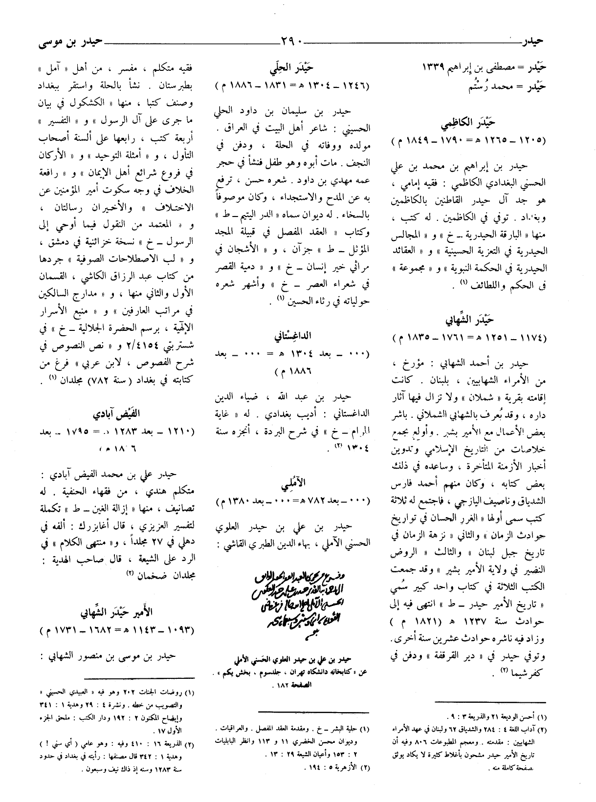 ومعجم المطبوعات 806 وفيه أن تاريخ الأمير حيدر مشحون بأغلاط كثيرة لا يكاد يوثق بصفحة كاملة منه.