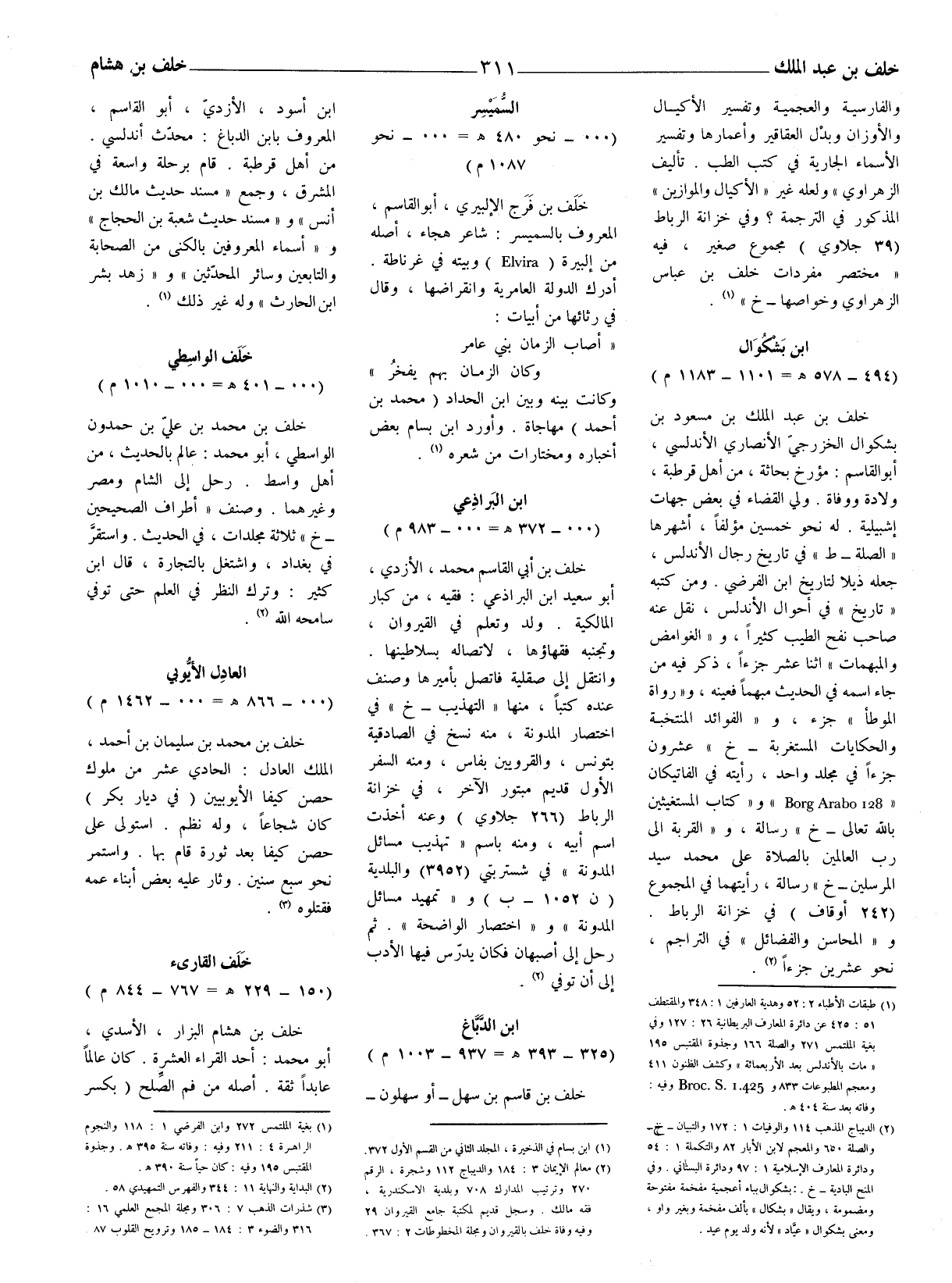 خلف بن عبد الملك بن مسعود بن بشكوال الخزرجيّ الأنصاري الأندلسي، أبو القاسم: مؤرخ بحاثة، من أهل قرطبة، ولادة ووفاة. ولي القضاء في بعض جهات إشبيلية. له نحو خمسين مؤلفا، أشهرها (الصلة - ط) في تاريخ رجال الأندلس، جعله ذيلا لتاريخ ابن الفرضيّ.