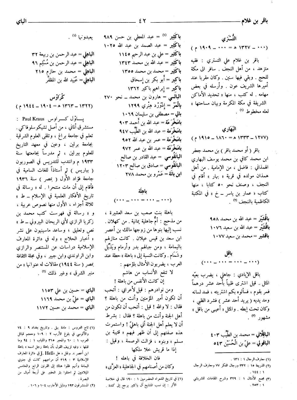 باول كراوس: Paul Kraus مستشرق ألماني، من أصل تشيكوسلوفاكي. تعلم في جامعة براغ، وتلقى العلوم الشرقية بجامعة برلين، وعين في معهد التاريخ للعلوم ببرلين، ثم مدرسا بجامعتها سنة 1933 م وانتدب للتدريس في الصوربون (بباريس) ثم أستاذا للغات السامية في جامعة فؤاد الأول (بمصر) سنة 1936 فأقام إلى أن مات منتحرا. له (رسالة في تاريخ الأفكار العلمية في الإسلام - ط) ثلاثة أجزاء، الأول منها نصوص عربية، و (رسالة في فهرست كتب محمد بن زكريا الرازي ل أبي الريحان البيروني - ط) نص وتعليق، وساعد ماسينيون على نشر (أخبار الحلاج) وله في دائرة المعارف الإسلامية دراسات عن المستنصر والرازيّ وابن الراونديّ وابن جبير، وفي مجلة الثقافة بمصر (سنة 1944) مقالات له عنوانها (من منبر الشرق) وغير ذلك (2) .