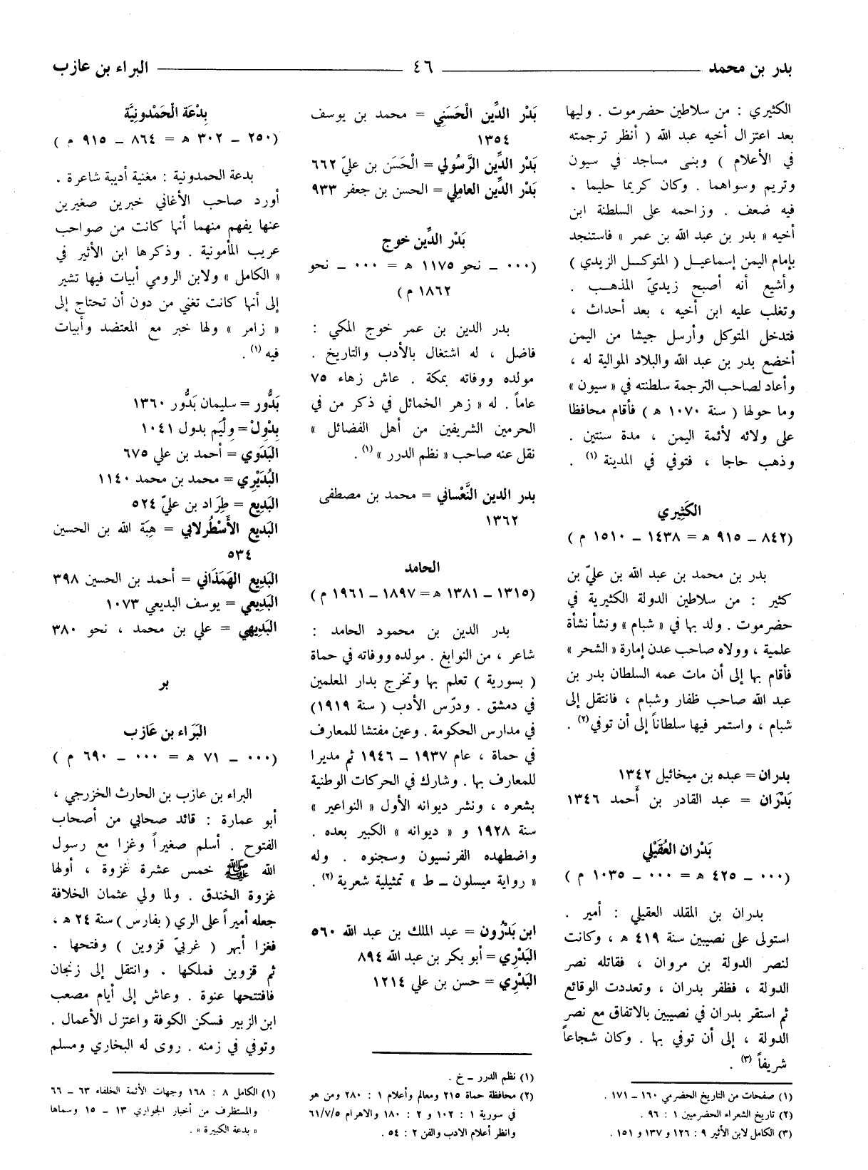 (2) محافظة حماة 215 ومعالم واعلام 1: 280 ومن هو في سورية 1: 102 و 2: 180 والاهرام 5 / 7 / 61 وانظر أعلام الأدب والفن 2: 54.