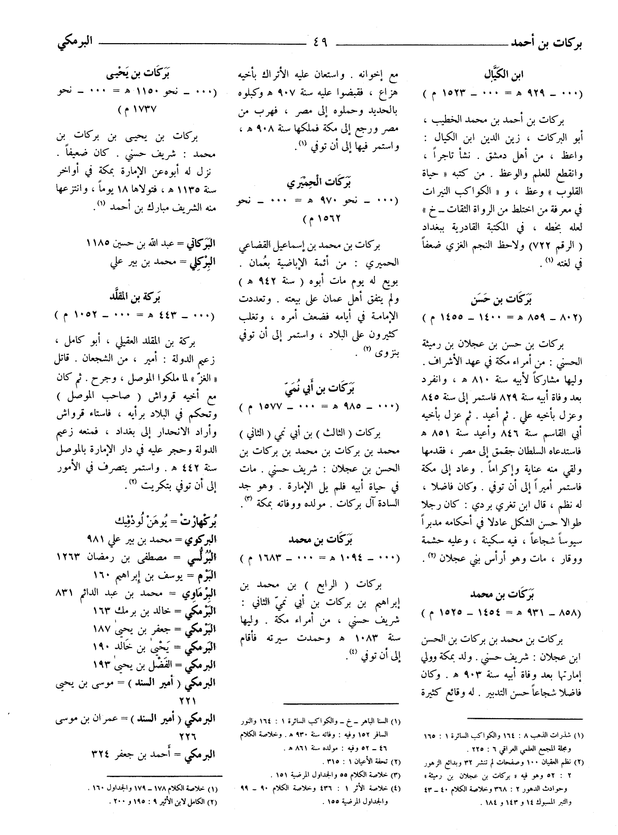 (2) نظم العقيان 100 وصفحات لم تنشر 32 وبدائع الزهور: 52 وهو فيه (بركات بن عجلان بن رميثة) وحوادث الدهور 2: 368 وخلاصة الكلام 40 -243 والتبر المسبوك 14 و 143 و 184.