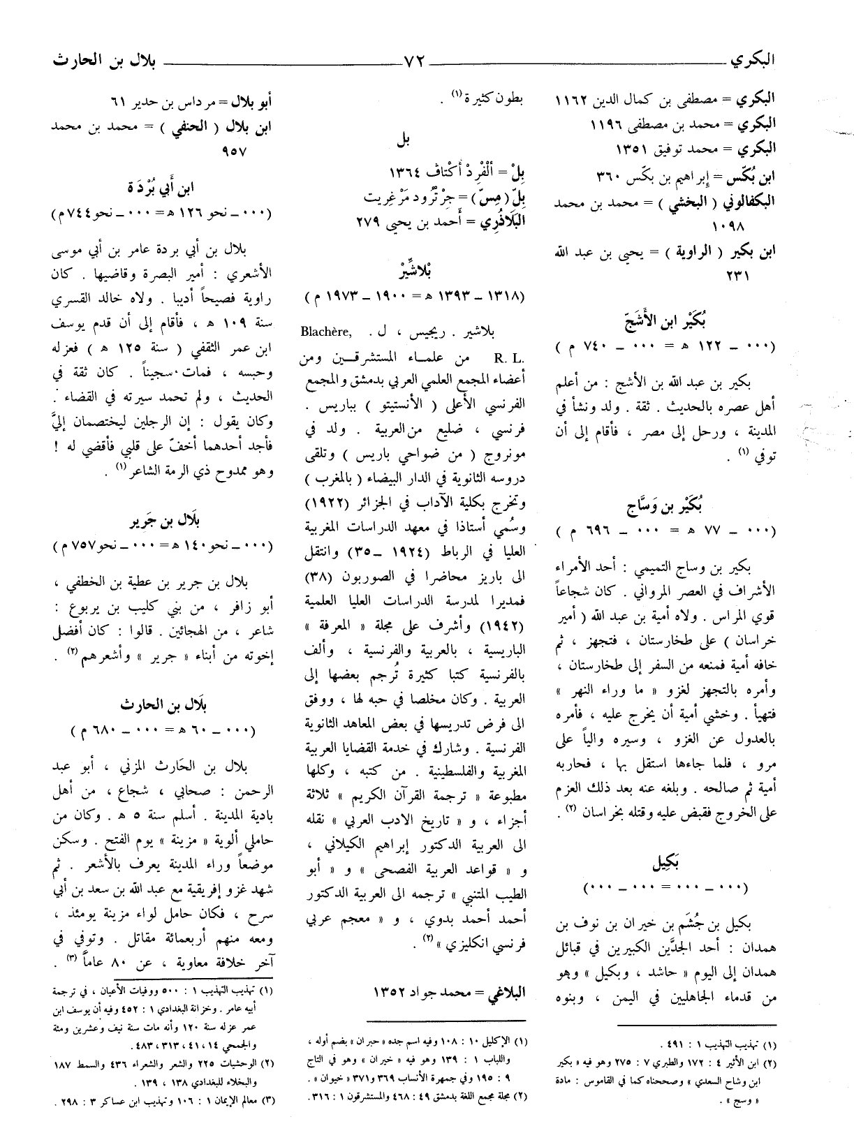 بلاشير. ريجيس، ل. R.L.Blachere.. من علماء المستشرقين ومن أعضاء المجمع العلمي العربيّ بدمشق والمجمع الفرنسي الأعلى (الأنستيتو) بباريس. فرنسي، ضليع من العربية.