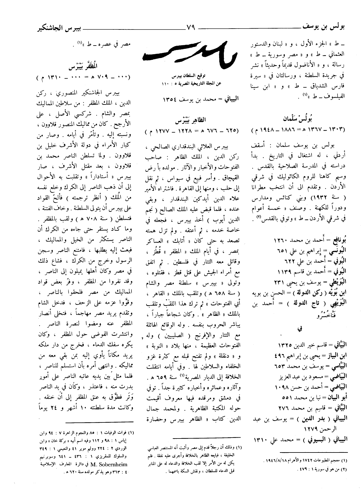 بيبرس العلائي البندقداري الصالحي، ركن الدين، الملك الظاهر: صاحب الفتوحات والاخبار والآثار. مولده بأرض القپچاق. وأسر فبيع في سيواس، ثم نقل إلى حلب، ومنها إلى القاهرة.