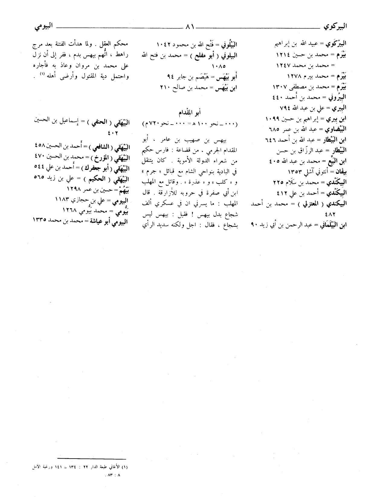 (1) الأغاني طبعة الدار 22: 134 - 141 ورغبة الآمل 8: 83.