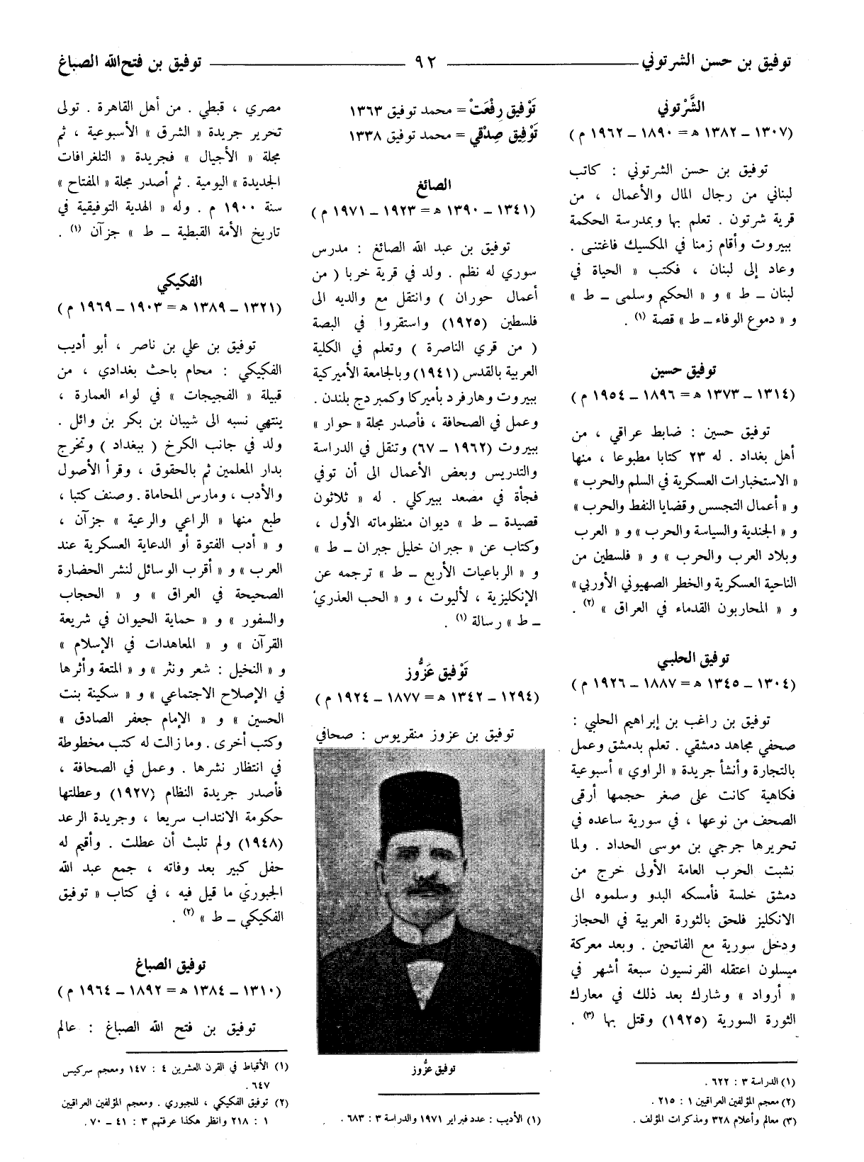 (2) توفيق الفكيكي، للجبوري. ومعجم المؤلفين العراقيين 1: 218 وانظر هكذا عرفتهم 3: 41 - 70.