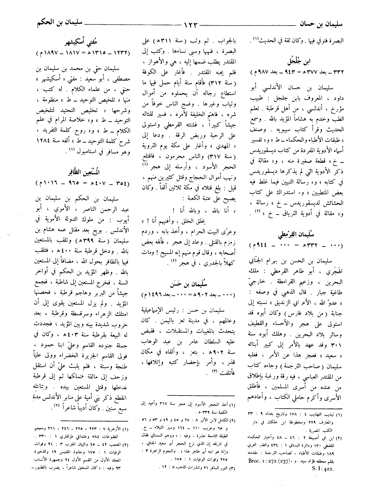 (2) الكامل لابن الأثير 8: 27 و 45 و 49 و 53 و 56 و 65 وعريب 110 - 164 وسير النبلاء - خ. الطبقة التاسعة عشرة، وفيه: (ووهم السمناني فقال في تاريخه أن الّذي نزع الحجر أبو سعيد الجنابي، وإنما هو ابنه أبو طاهر هذا) . والنجوم الزاهرة 3: 225
