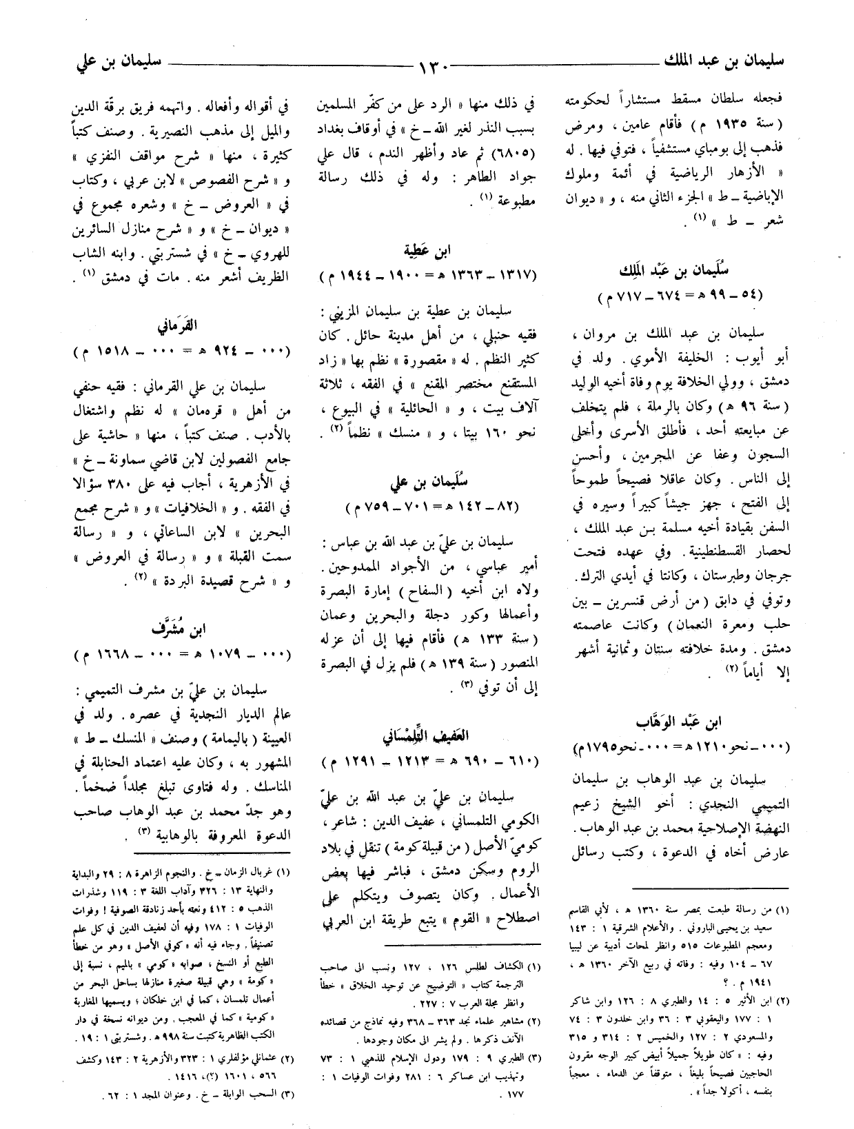 سليمان بن علي بن مشرف التميمي: عالم الديار النجدية في عصره. ولد في العيينة (باليمامة) وصنف (المنسك - ط) المشهور به، وكان عليه اعتماد الحنابلة في المناسك. وله فتاوى تبلغ مجلدا ضخما. وهو جد محمد بن عبد الوهاب صاحب الدعوة المعروفة بالوهابية (3) .