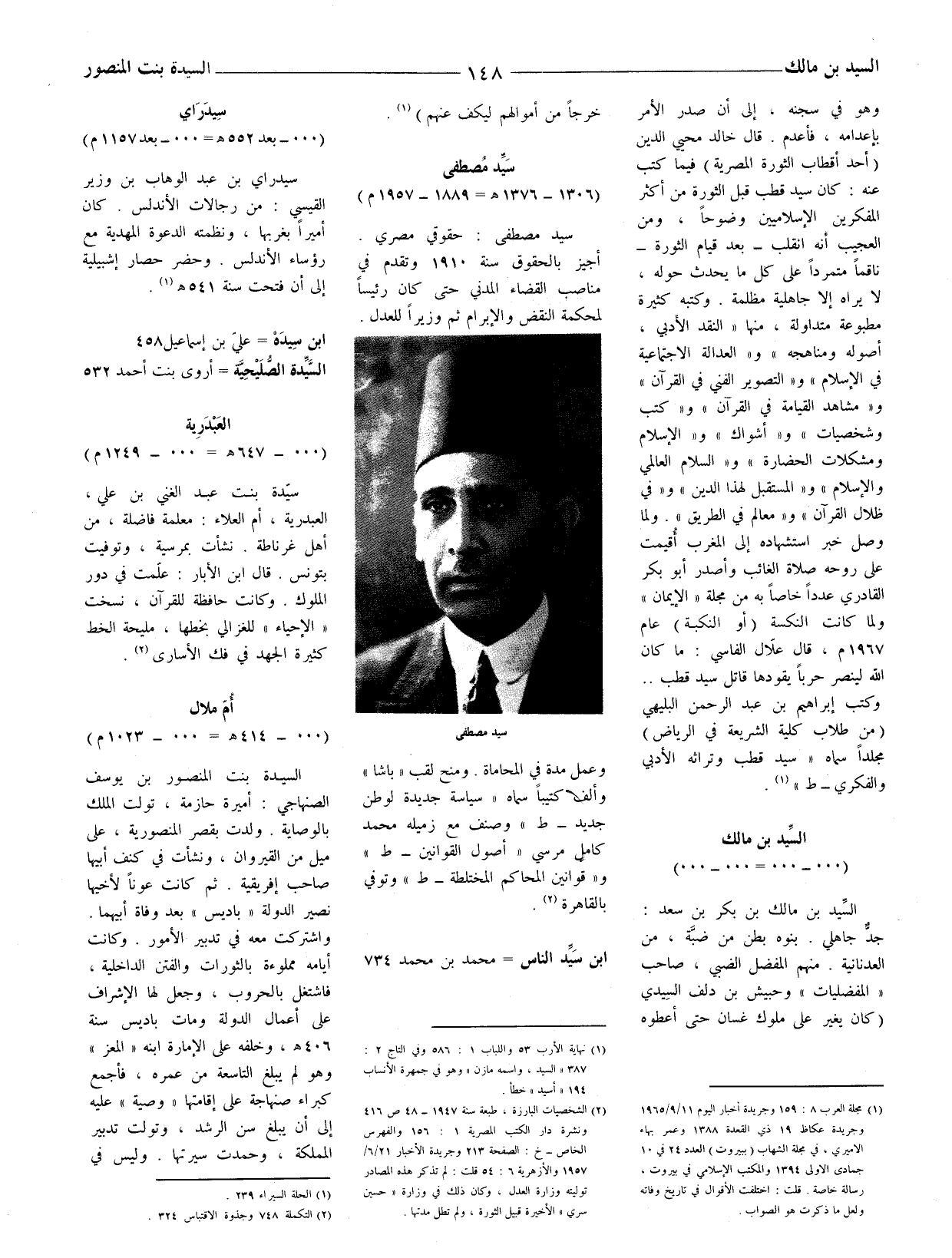 (1) مجلة العرب 8: 159 وجريدة أخبار اليوم 11 / 9 / 1965 وجريدة عكاظ 19 ذي القعدة 1388 وعمر بهاء الاميري، في مجلة الشهاب (ببيروت) العدد 24 في 10 جمادى الأولى 1394 والمكتب الإسلامي في بيروت، رسالة خاصة. قلت: اختلفت الأقوال في تاريخ وفاته ولعل ما ذكرت هو الصواب.