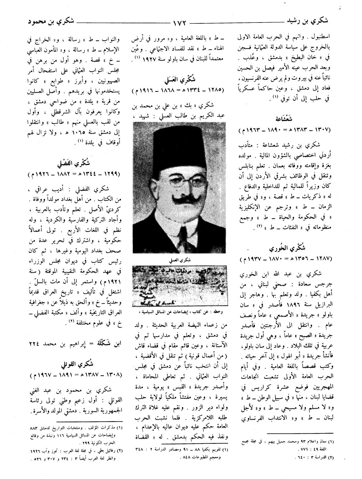شكري بن محمود بن عبد الغني القوتلي: أول زعيم وطني تولى رئاسة الجمهورية السورية.