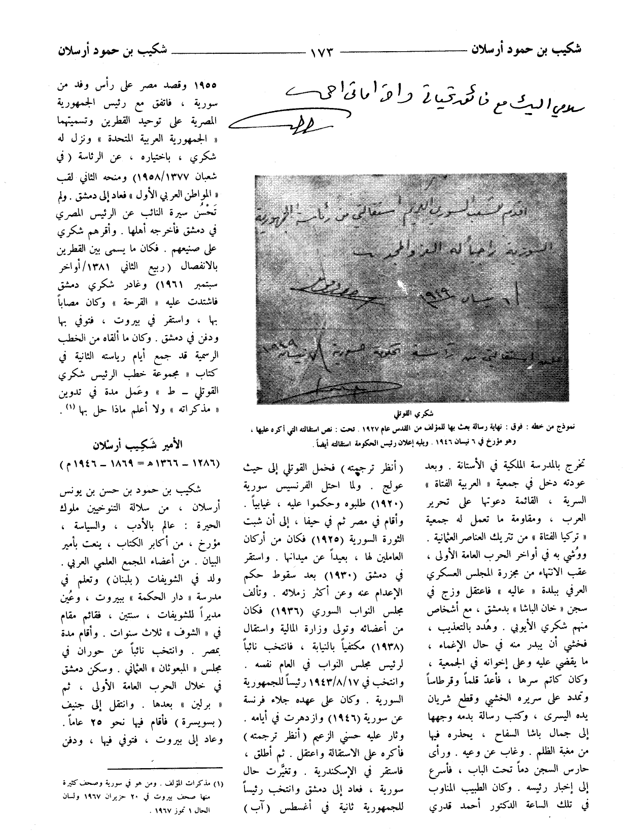 (1) مذكرات المؤلف. ومن هو في سورية وصحف كثيرة منها صحف بيروت في 20 حزيران 1967 ولسان الحال 1 تموز 1967.