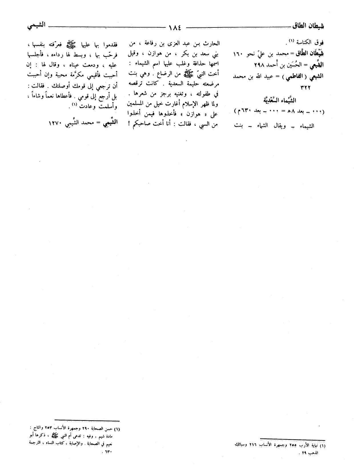 (1) حسن الصحابة 290 وجمهرة الأنساب 253 والتاج: مادة شيم، وفيه: تدعى أم النبي صلى الله عليه وسلم، ذكرها أبو نعيم في الصحابة. والإصابة، كتاب النساء، الترجمة 630.