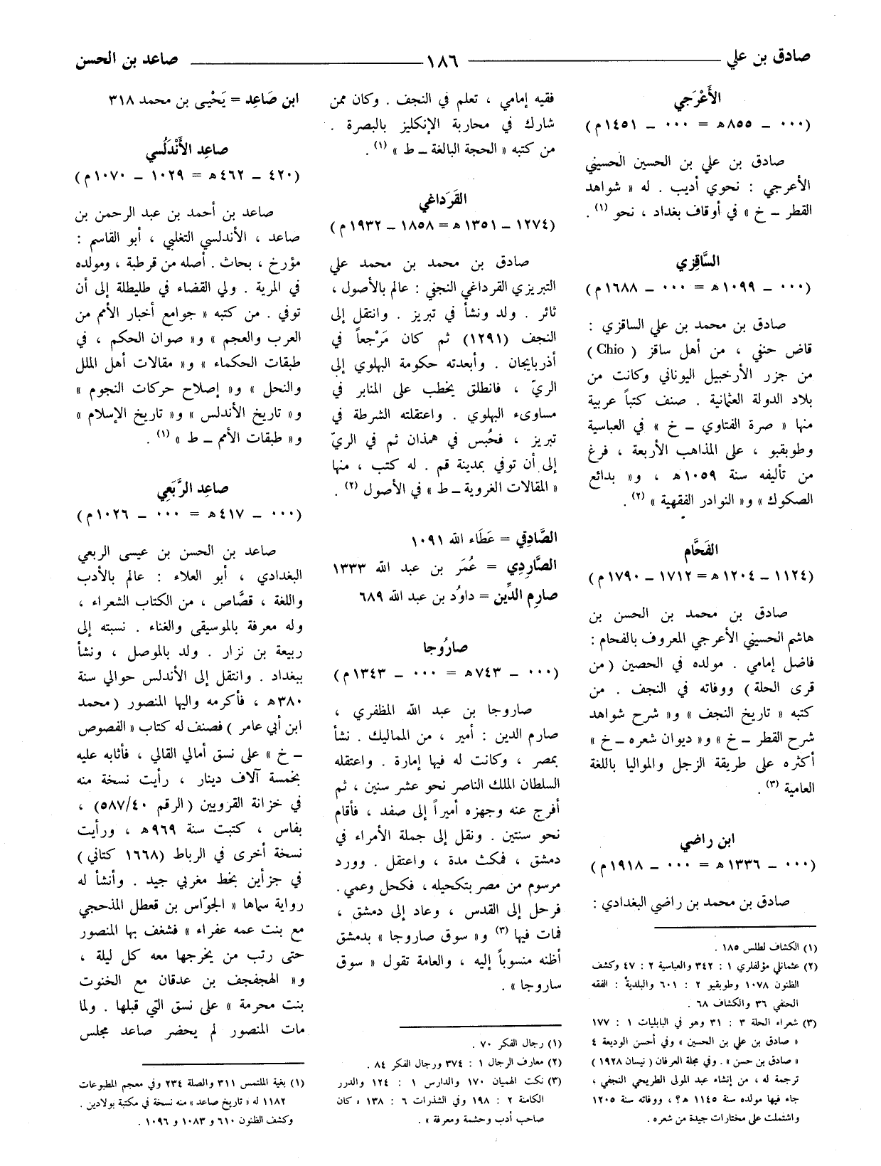 صادق بن علي بن الحسين الحسيني الأعرجي: نحوي أديب. له (شواهد القطر - خ) في أوقاف بغداد، نحو (1) .