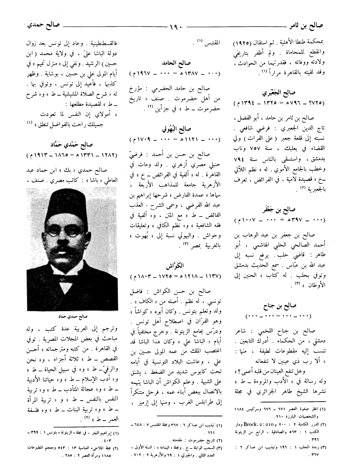 (2) مجلة الملاجئ العباسية 13: 543 ومعجم المطبوعات 1185 ومرآة العصر 2: 285.