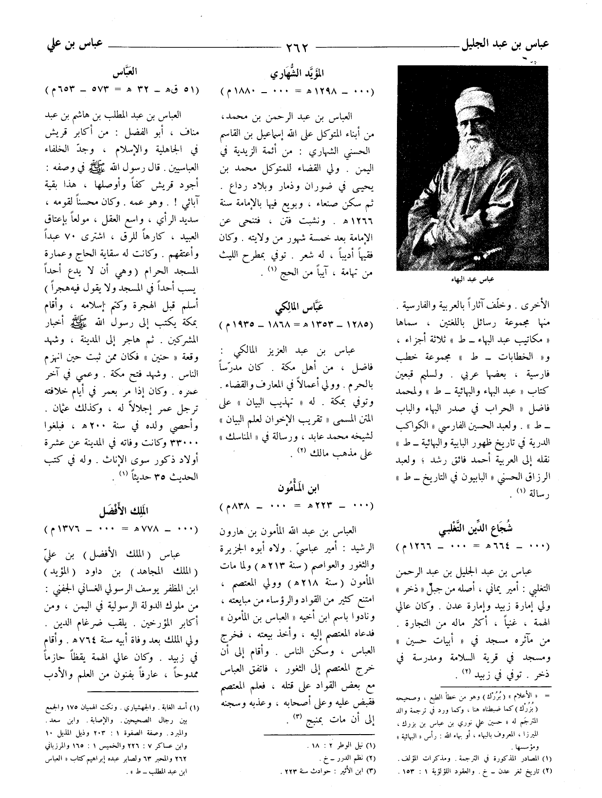 = (الأعلام) (بررك) وهو من خطأ الطبع، وصحيحه (بزرك) كما ضبطناه هنا، وكما ورد في ترجمة والد المترجم له (حسين علي نوري بن عباس بن بزرك، الميرزا، المعروف بالبهاء، أو بهاء الله: رأس (البهائية) ومؤسسها.