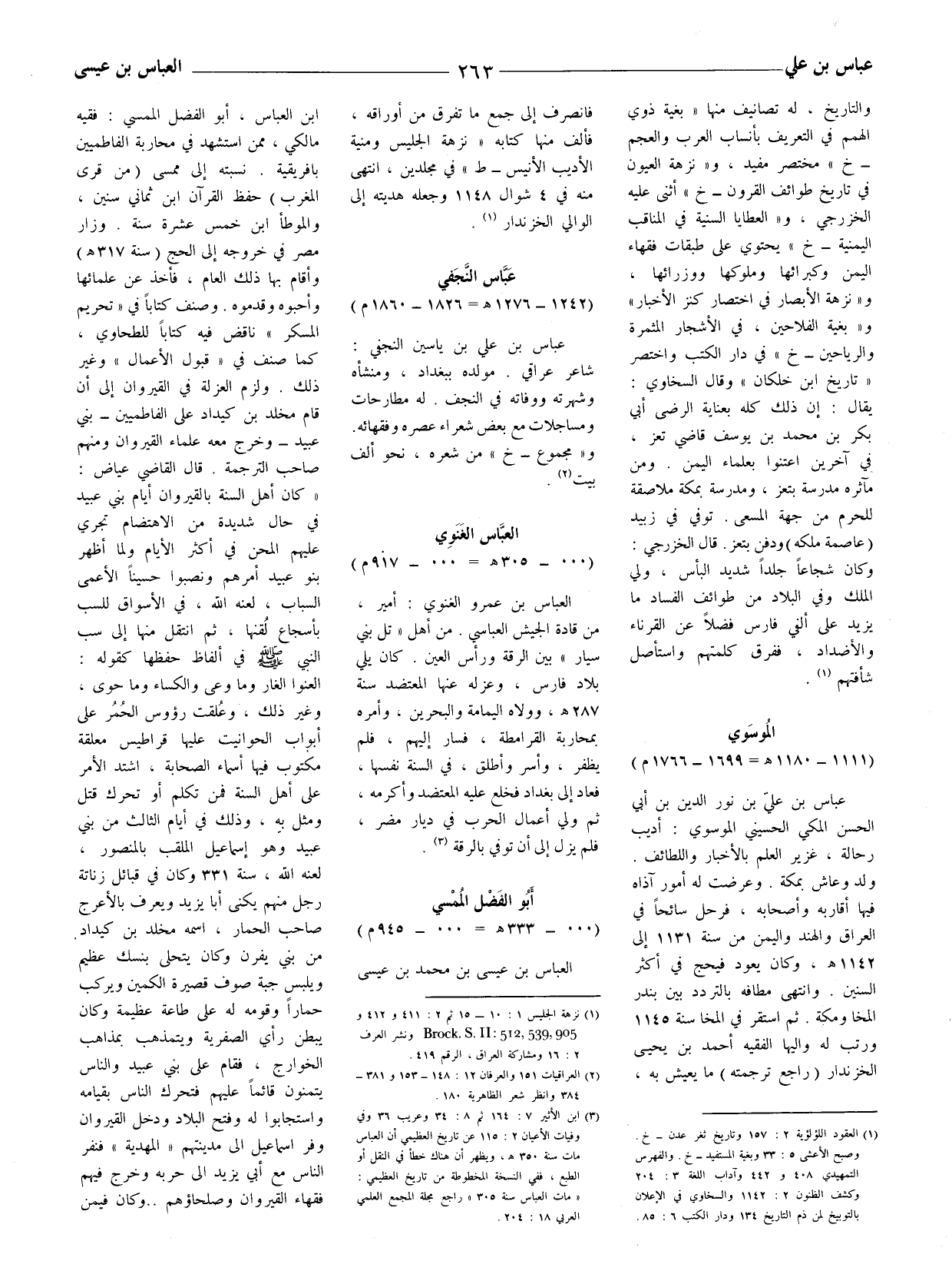 (3) ابن الأثير 7: 164 ثم 8: 34 وعريب 36 وفي وفيات الأعيان 2: 115 عن تاريخ العظيمي أن العباس مات سنة 350 هـ ويظهر أن هناك خطأ في النقل أو الطبع، ففي النسخة المخطوطة من تاريخ العظيمي: (مات العباس سنة 305) راجع مجلة المجمع العلمي العربي: 18: 204.