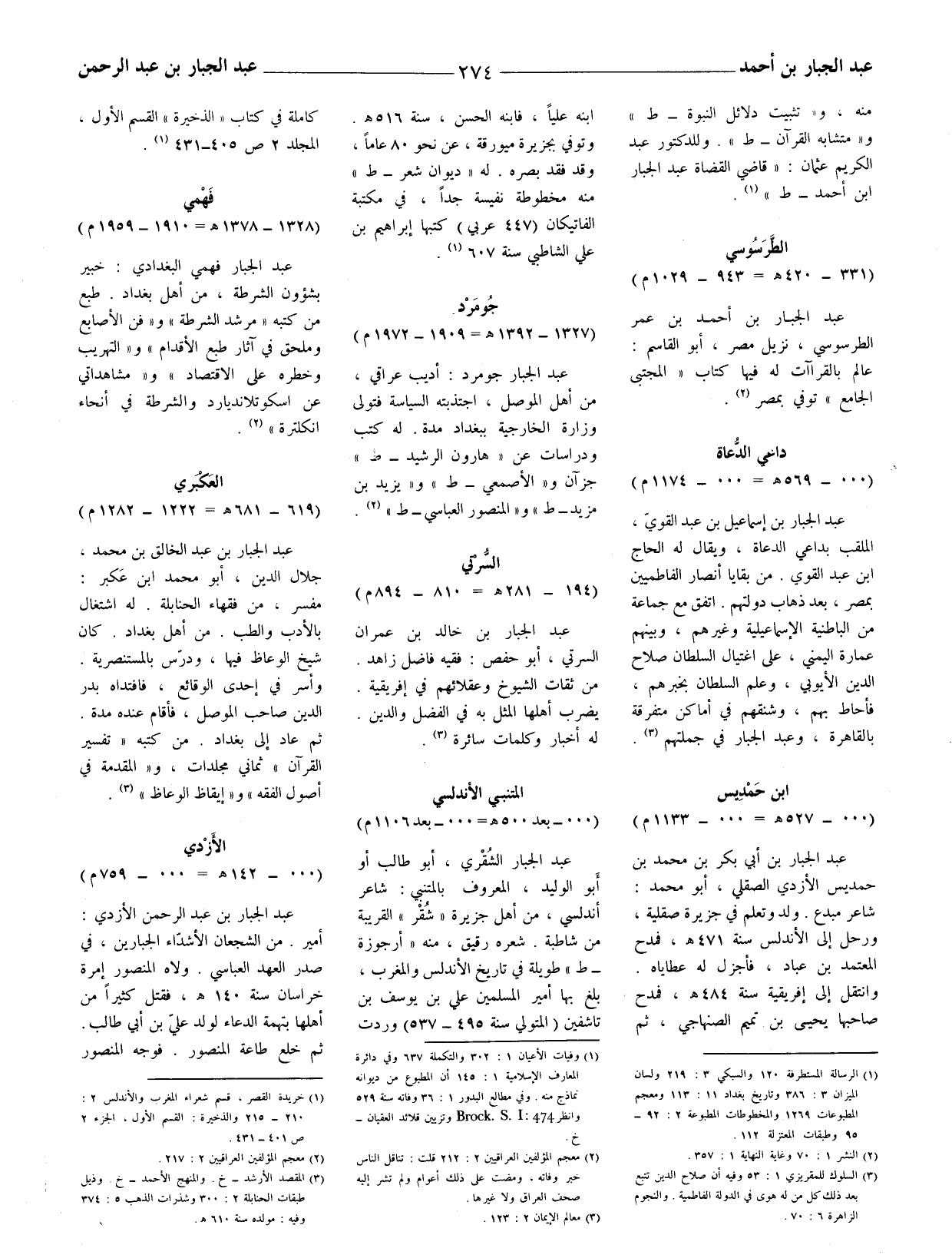 عبد الجبار بن أحمد بن عمر الطرسوسي، نزيل مصر، أبو القاسم: عالم بالقراآت له فيها كتاب (المجتبى الجامع) توفي بمصر (2) .