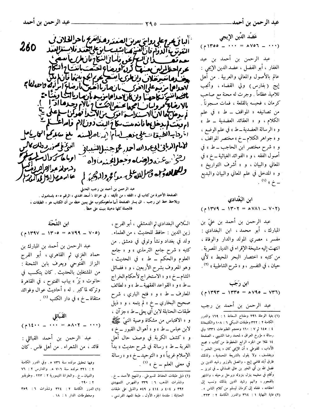 حافظ للحديث، من العلماء. ولد في بغداد ونشأ وتوفي في دمشق. من كتبه (شرح جامع الترمذي) و (جامع العلوم والحكم - ط) في الحديث، وهو المعروف بشرح الأربعين، و (فضائل الشام - خ) و (الاستخراج لأحكام الخراج - ط) و (القواعد الفقهية - ط) و (لطائف المعارف - ط) و (فتح الباري، شرح صحيح البخاري - خ) لم يتمه، و (ذيل طبقات الحنابلة لابن أبي يعلى - ط) جزان، و (الاقتباس من مشكاة وصية النبي صلى الله عليه وسلم لابن عباس - ط) و (أهوال القبور - خ) و (كشف الكربة في وصف حال أهل الغربة - ط) رسالة في شرح حديث (بدأ الإسلام غريبا) و (التوحيد - خ) و (رسالة في معنى العلم - خ) (1) .