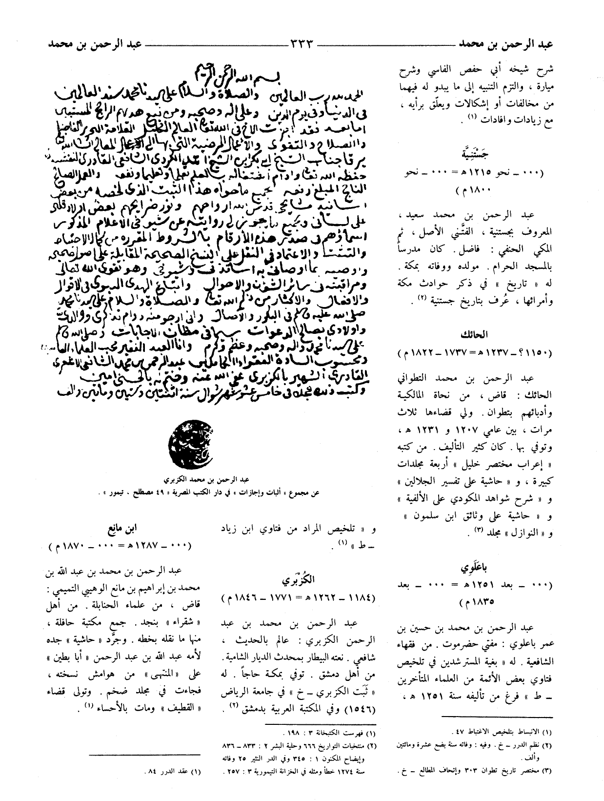 عبد الرحمن بن محمد بن حسين بن عمر باعلوي: مفتي حضرموت. من فقهاء الشافعية.
