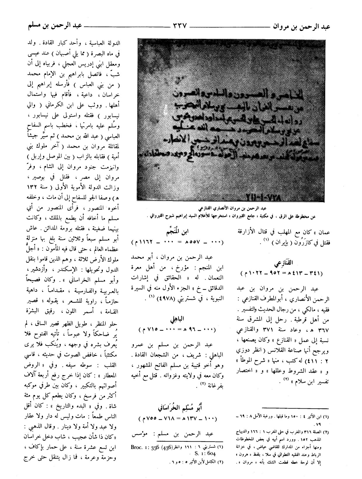 (1) شستربتي 6: 161 وانظر Broc 1: 356 (436) S 1: 604.
