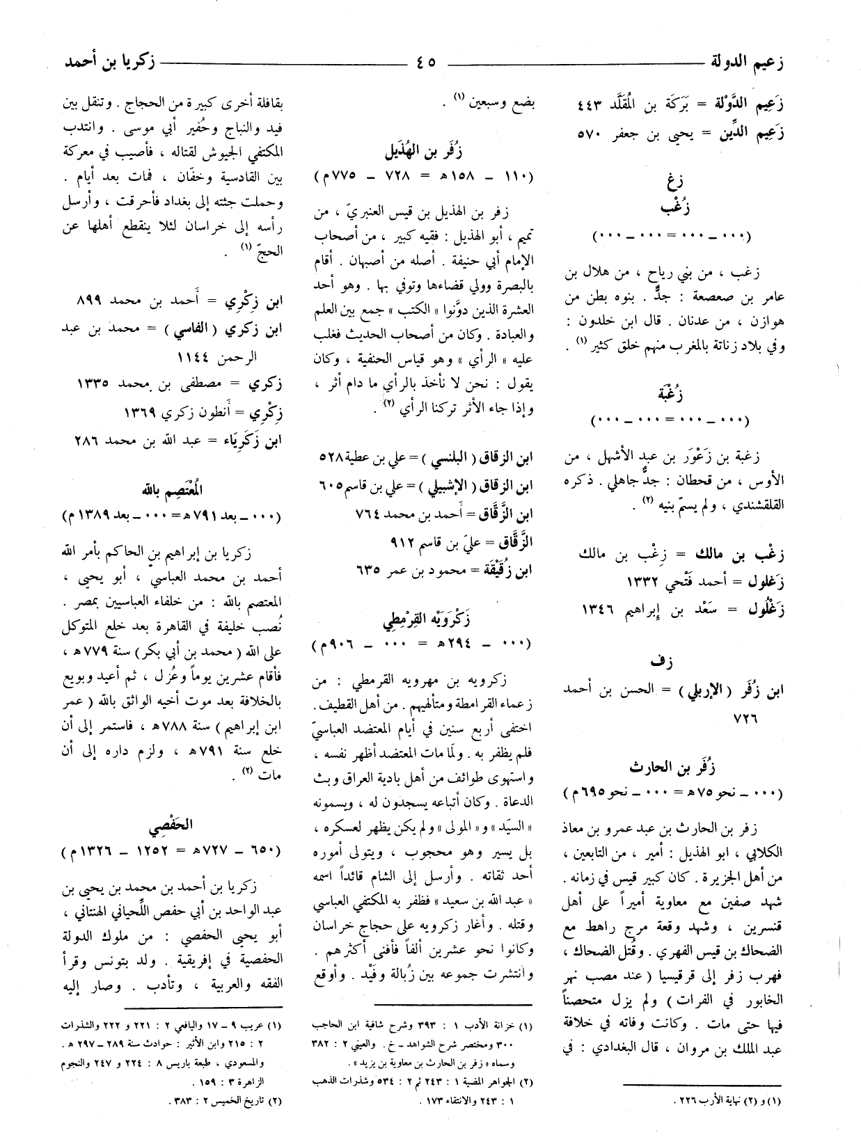 (1) عريب 9 - 17 واليافعي 2: 221 و 222 والشذرات 2: 215 وابن الأثير: حوادث سنة 289 - 297 هـ والمسعودي، طبعة باريس 8: 224 و 247 والنجوم الزاهرة 3: 159.