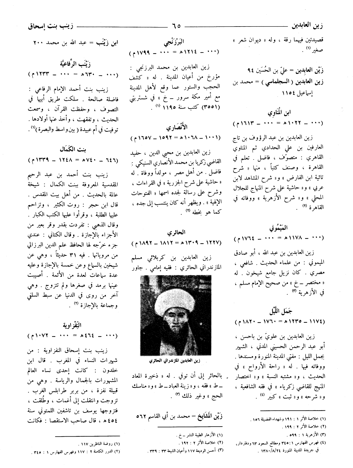 زين العابدين بن كربلائي مسلم المازندراني الحائري: فقيه إمامي. جاور بالحائر إلى أن توفي. له (ذخيرة المعاد - ط) فقه، و (زينة العباد - ط) و (مناسك الحج) وغير ذلك (3) .