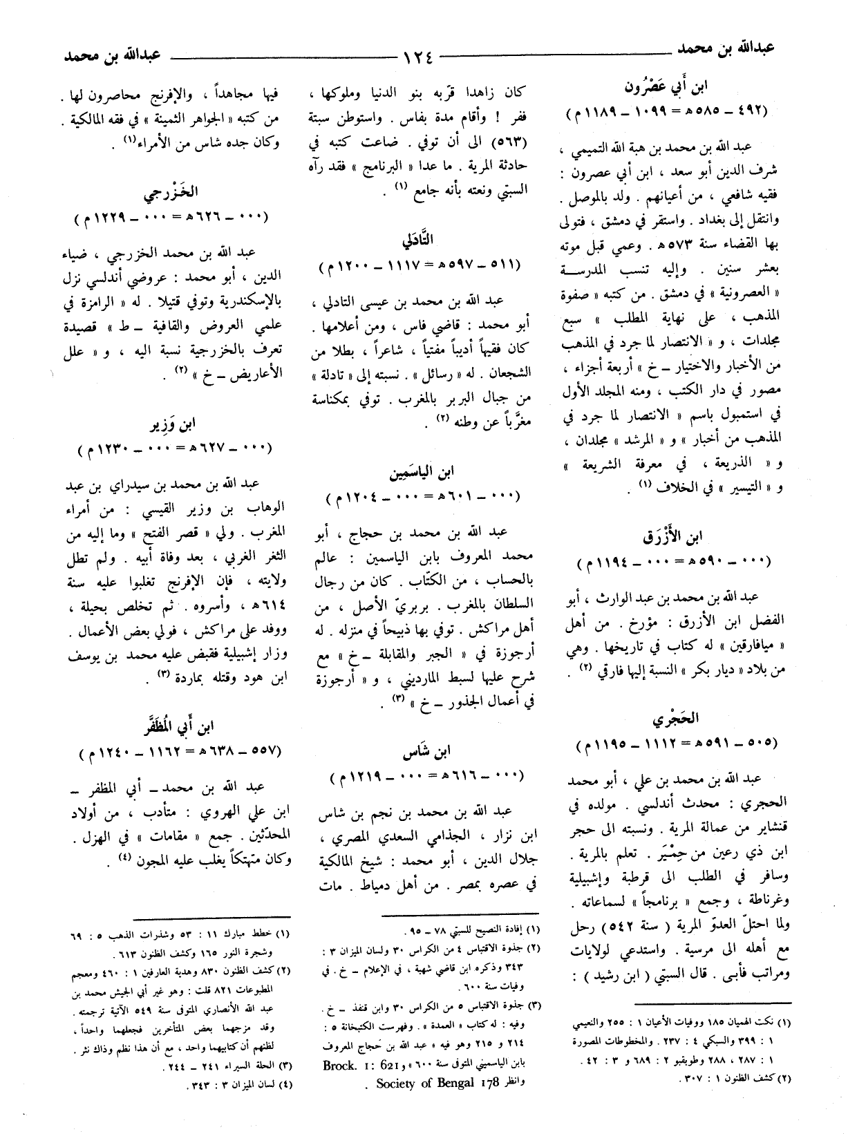 وفهرست الكتبخانة 5: 214 و 215 وهو فيه " عبد الله بن حجاج المعروف بابن الياسمنيي المتوفى سنة 600 " و 62 Brock I: 621. وانظر. Society of Bengal 178