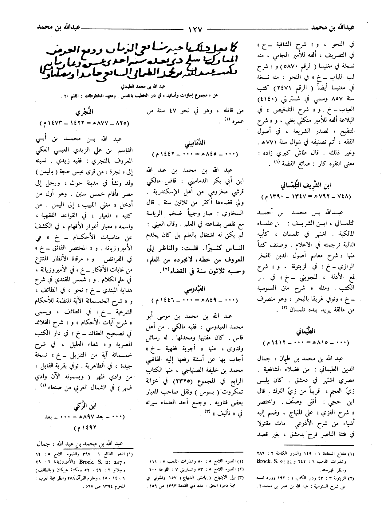 (2) الزيتونة 3: 43 ودار الكتب 1: 192 وورد اسمه على شرح السنوسية: عبد الله بن عمر بن محمد؟.